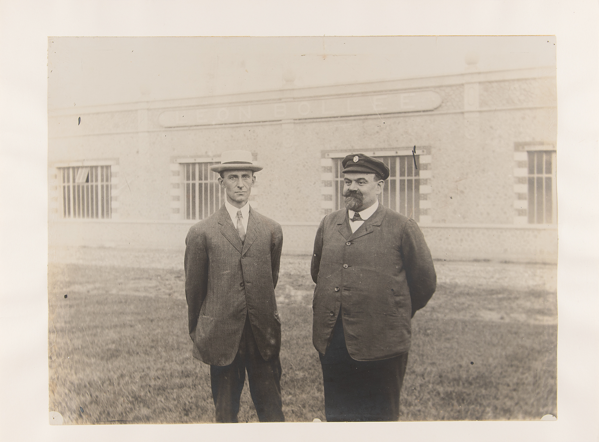 Wilbur Wright arrived in France in 1908 to conduct a series of public demonstration flights in order to secure a contract for the manufacture and sale of airplanes. There he was introduced to Léon Bollée, an automobile manufacturer and early advocate for aviation. The two became fast friends: in Wilbur's diary entry of June 8, 1908, he noted, 'I went down to Le Mans at the invitation of M. Léon Bollée to inspect some grounds. M. Bollée met us and took us about in his automobile to see several places of which the racecourse and the military field were the most desirable. He was very kind, and offered us the conveniences of his factory and a big room to assemble the machine in if we chose. We will probably locate here, as the conveniences offered by M. Bollée will be of great value.' In the biography The Bishop's Boys: A Life of Wilbur and Orville Wright, author Tom Crouch observes: 'There were, in fact, few things Bollée would not have done for Wilbur. A sport balloonist and president of the Aéro-Club de la Sarthe, he would become the Wrights' closest friend in France.'