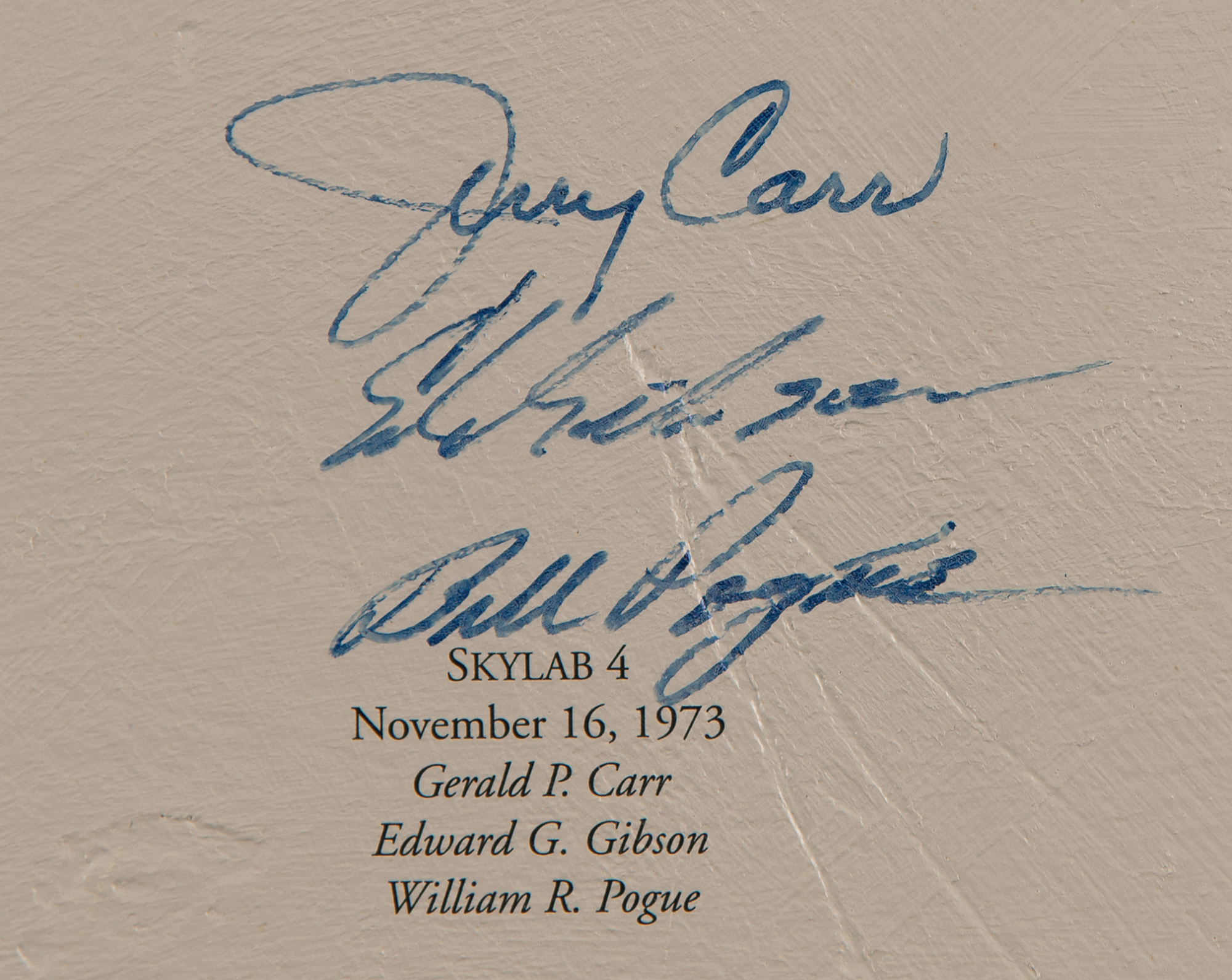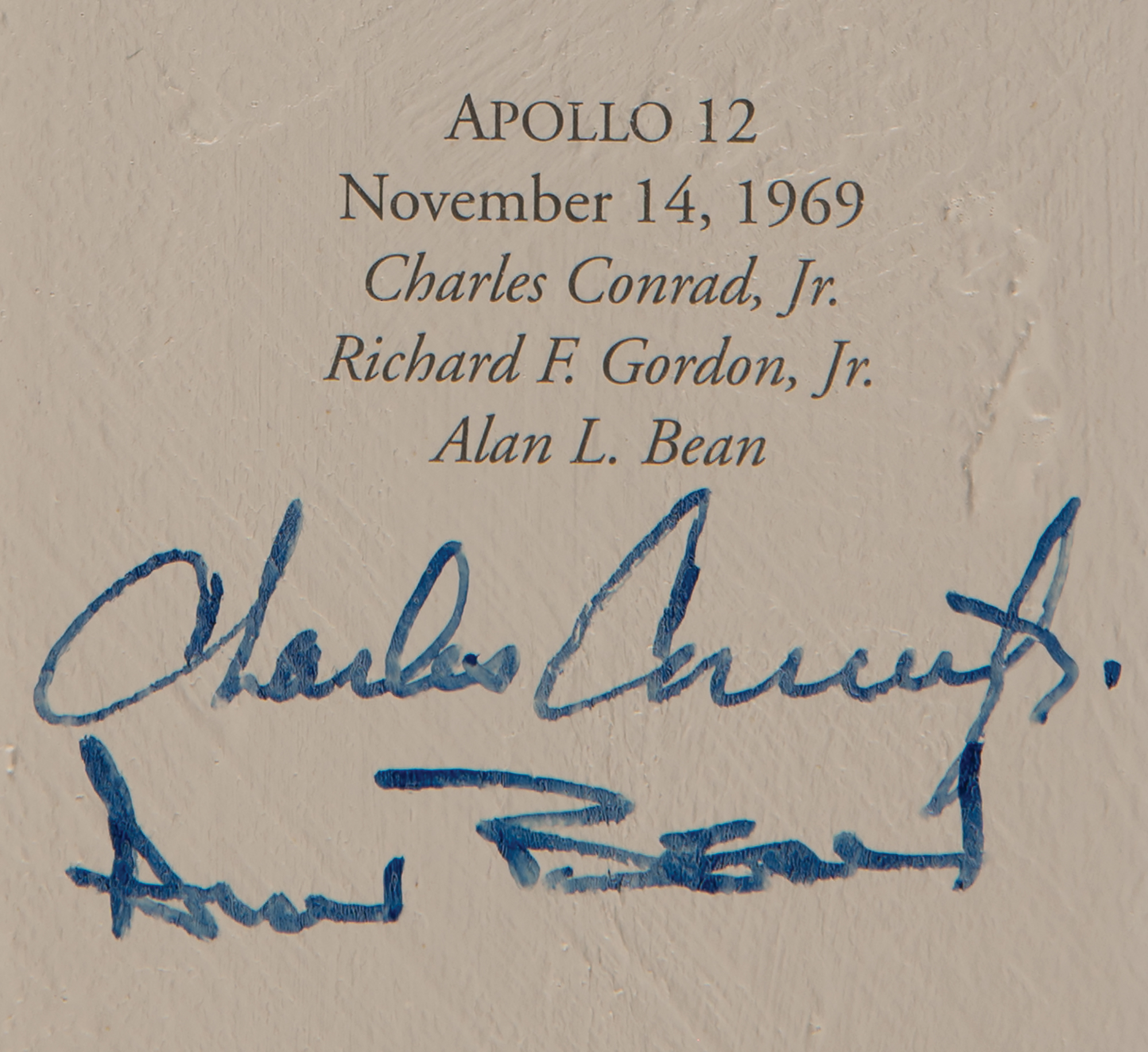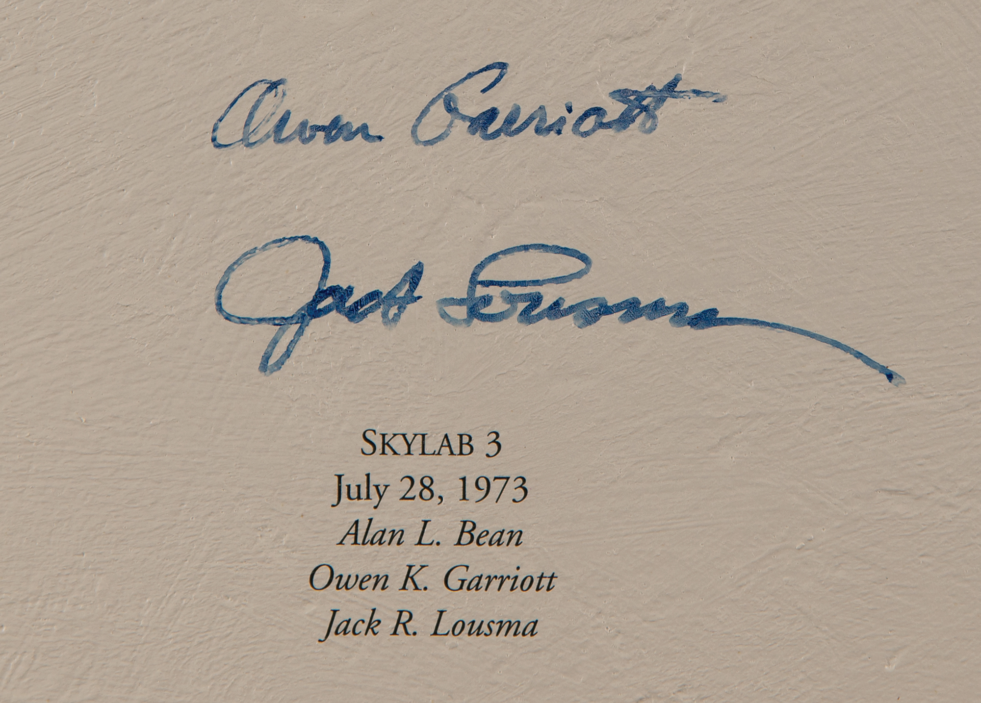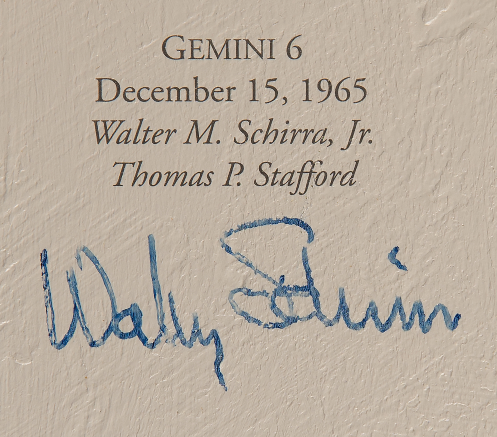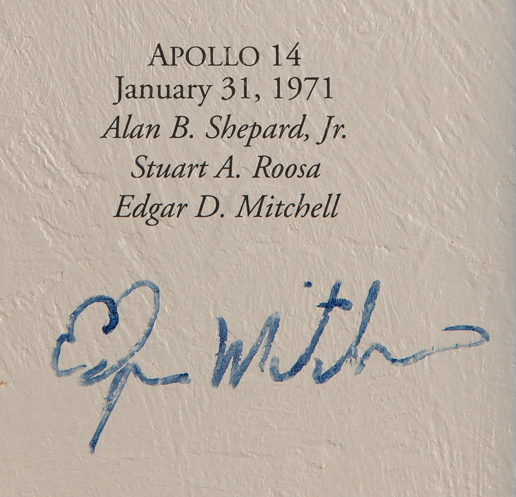 Marvelous limited edition color 26.5 x 33.25 textured canvas print of a 1997 painting by Alan Bean entitled ‘Reaching for the Stars,’ numbered 82/1500, stretched over a wooden frame, depicting an astronaut soaring away from Earth and grasping a star. Signed along the borders in ink and felt tip by 24 astronauts from the Mercury, Gemini, Apollo, and Skylab programs, including: Alan Shepard, John Glenn, Scott Carpenter, Gordon Cooper, Jim McDivitt, Wally Schirra, Richard Gordon, Paul Weitz, Owen Garriott, Jack Lousma, Jerry Carr, Ed Gibson, Bill Pogue, Tom Stafford, Walt Cunningham, Rusty Schweickart, Buzz Aldrin, Charles Conrad, Alan Bean, James Lovell, Fred Haise, Edgar Mitchell, Al Worden, and Charlie Duke. Framed without glass to a slightly larger size and in fine condition. Accompanied by an information packet from Novagraphics related to the release and sale of 'Reaching for the Stars,' which includes an Astronaut Scholarship Foundation sheet from Shepard, which bears his preprinted signature.