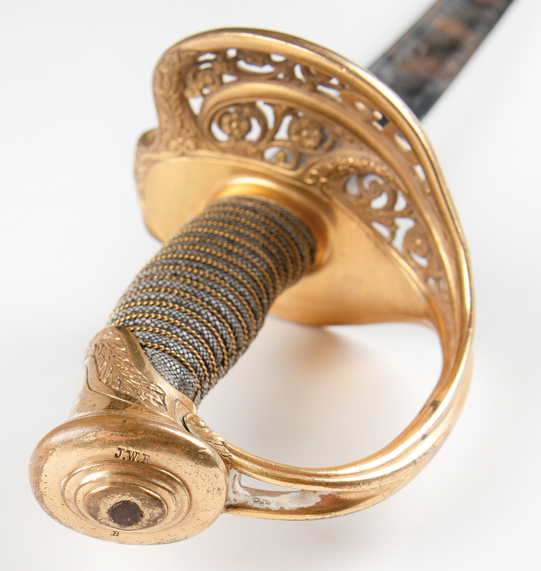 The recipient of this sword, 2nd Lieut. William S. Brackett, is not found in military records. William Starr Brackett (1821-1888) and his son William Starr Brackett, Jr. (1850-1902) traveled to San Francisco 1864-1865 to settle estate of General John Ely Brackett (1812-1864), who owned valuable land in Sonoma County according to genealogical records. William S. Brackett, Jr. attended the City College of San Francisco during these two years. By 1866, both father and son were back in Peoria, Illinois.