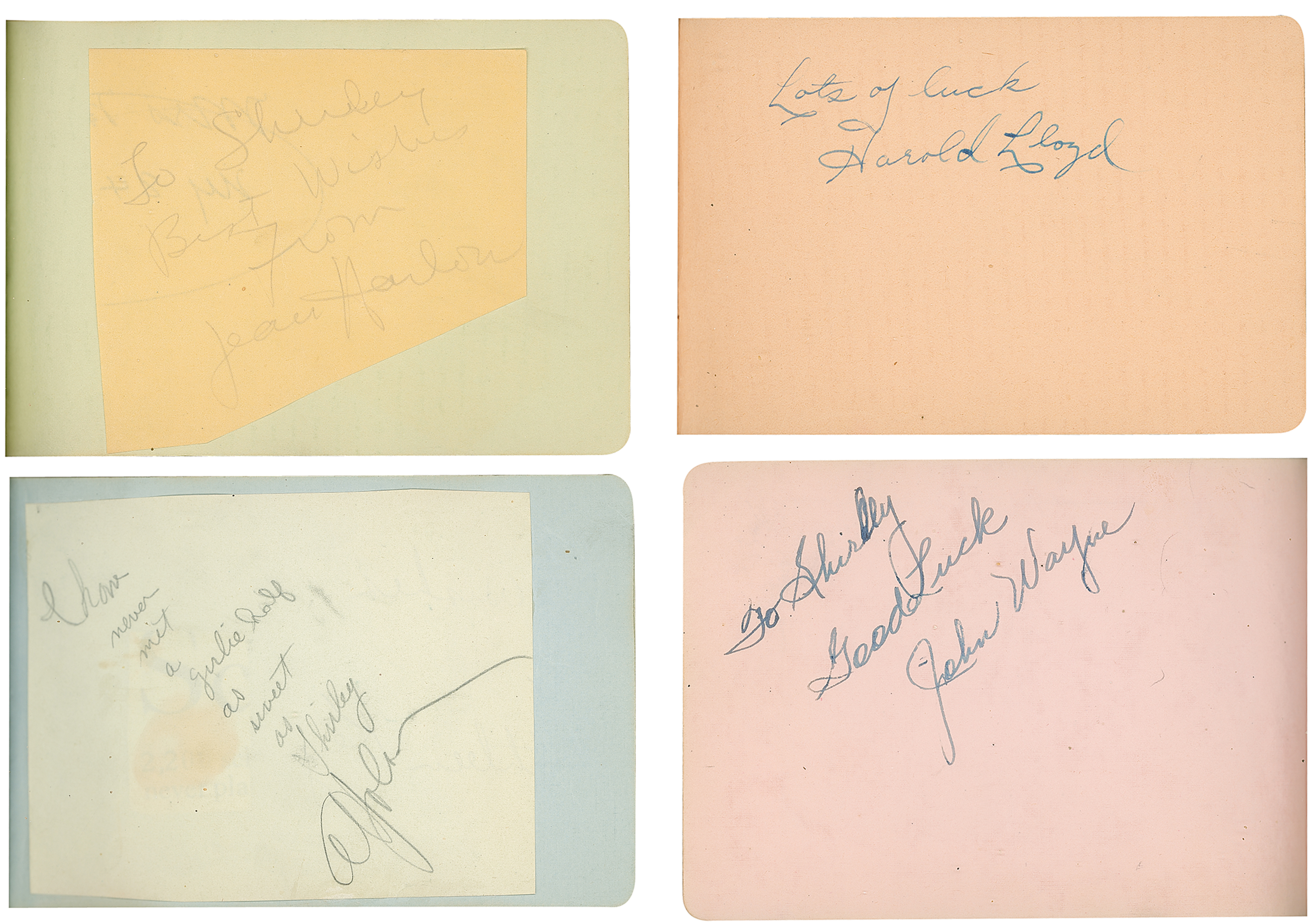 Over 80 signatures of vintage Hollywood stars like Jean Harlow, John Wayne, Harold Lloyd, Al Jolson, and more