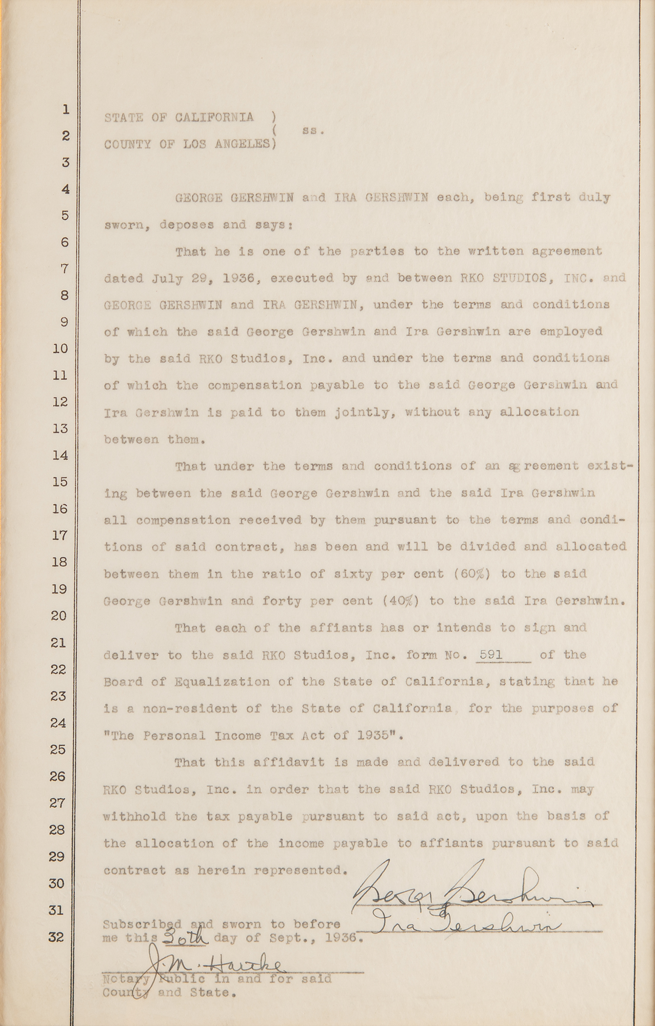 George and Ira Gershwin Signed Contract with RKO Studios (1936)