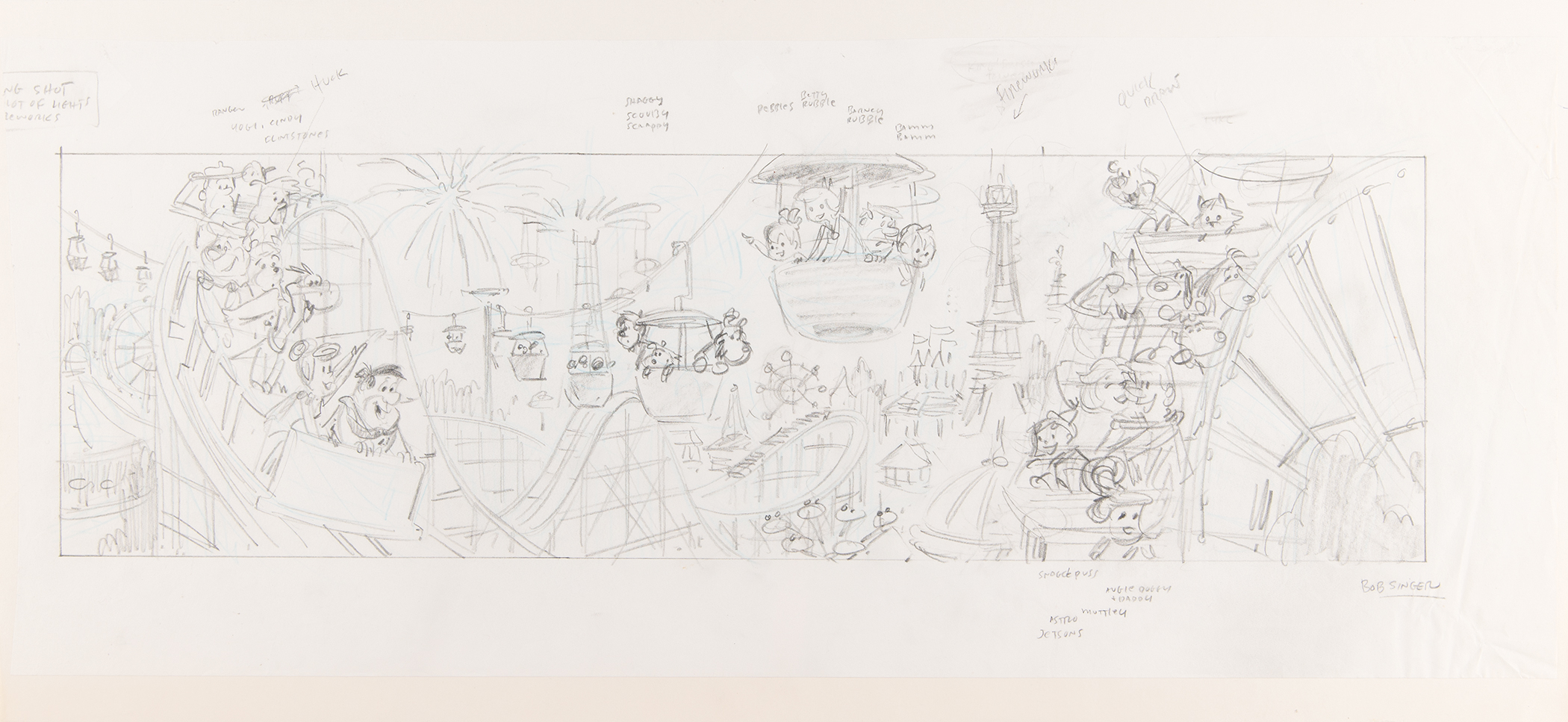 Hanna-Barbera pan production 'Theme Park' drawing by Bob Singer