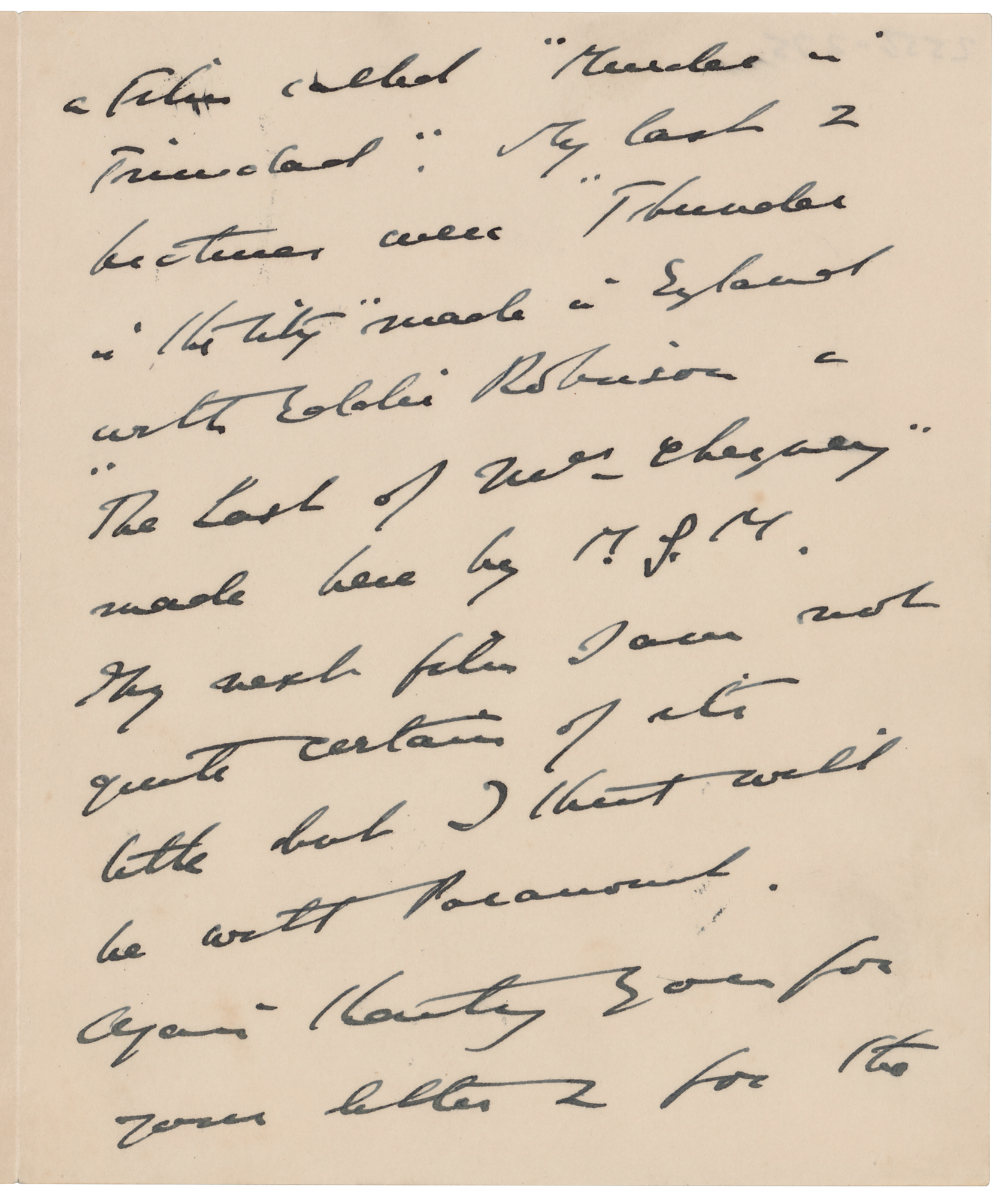 British character actor (1895-1953) best known for his frequent role as Dr. Watson opposite Basil Rathbone as Sherlock Holmes. ALS, three pages on two adjoining sheets, 5.5 x 6.75, personal letterhead, February 12, 1937. An interesting letter to a fan mentioning several of his films. In part: "Thank you for your nice letter. I have played many good parts on the stage in England & in New York but the only part I ever played that I really liked on the films was Inspector Lynch in a film called 'Murder in Trinidad.' My last 2 pictures were 'Thunder in the City' made in England with Eddie Robinson & 'The Last of Mrs. Cheyney' made here by MGM." In fine condition.