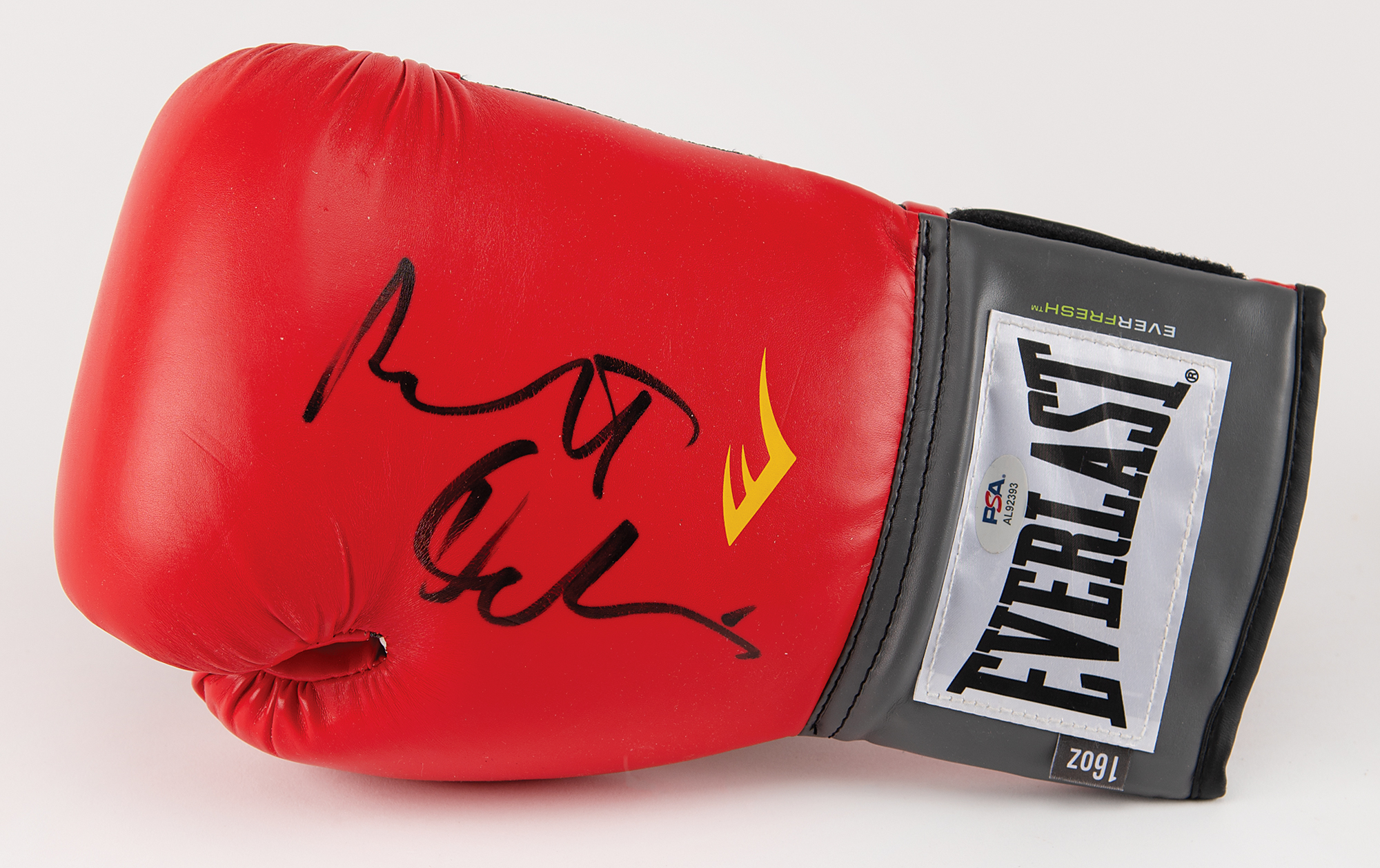Everlast boxing glove signed in black felt tip by Robert DeNiro. In very fine condition, with a PSA label affixed to the wrist section. An appealing format signed by the Raging Bull actor.