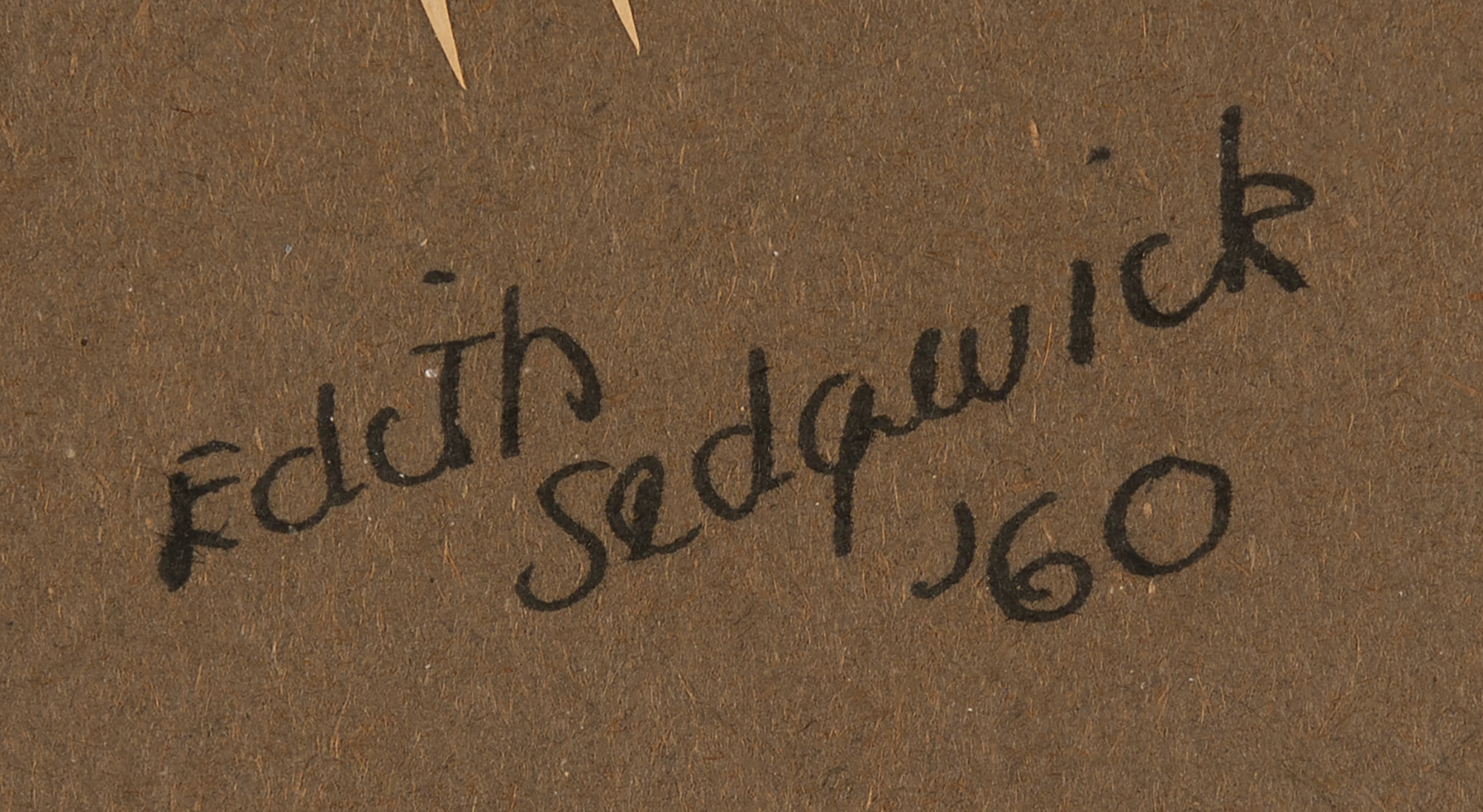 Sedgwick left the St. Timothy's School boarding school in 1959 and returned to her family’s La Laguna ranch in California. She remained there until she was sent to the private Silver Hill psychiatric hospital in New Canaan, Connecticut, in the fall of 1962. Her date notation of 1960 places her at the age of either 16 or 17 when this work was created. Sedgwick’s childhood on the ranch instilled in her a great love for animals of all sizes, from majestic horses and lions to the smallest of woodland creatures.