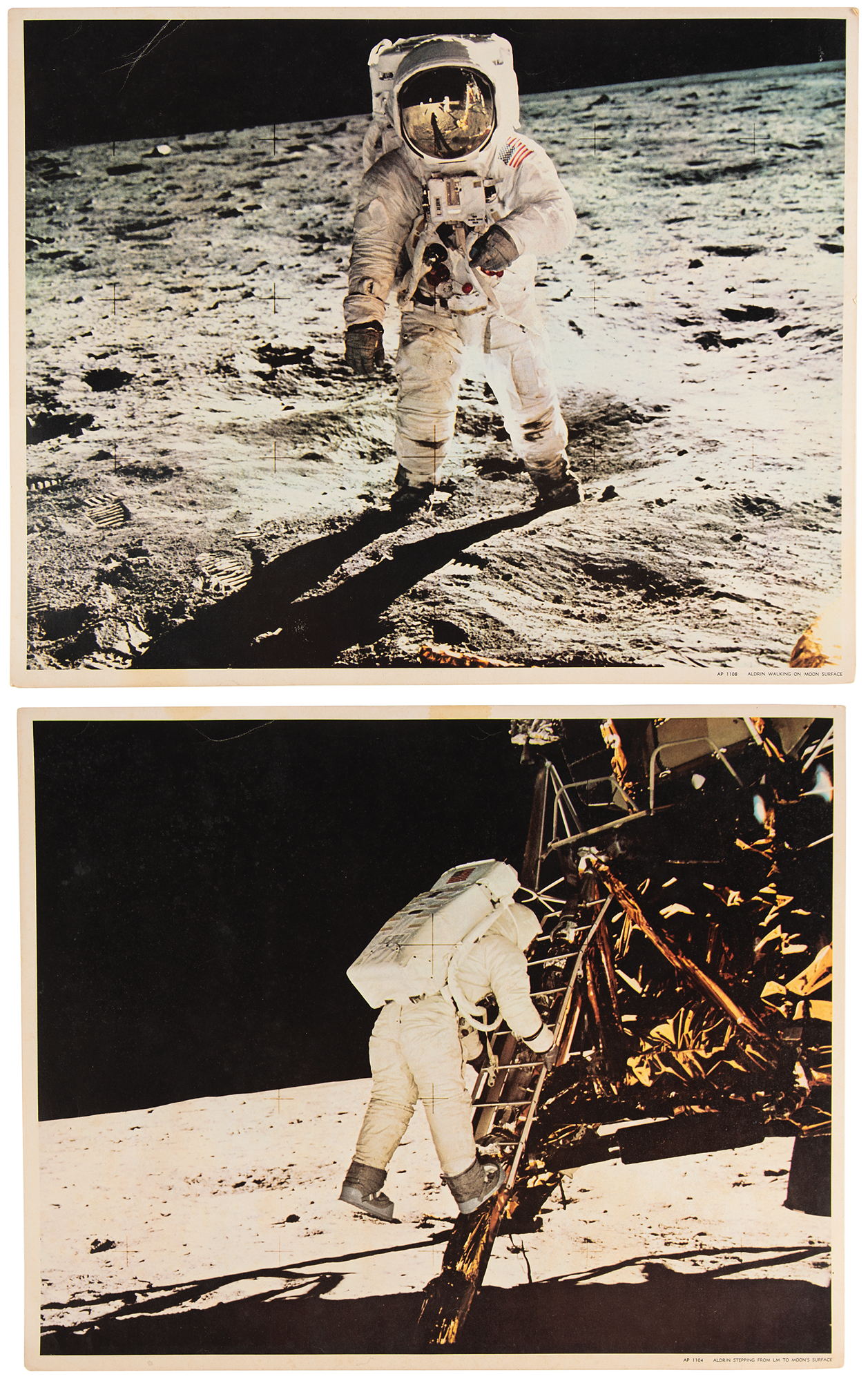 - Two oversized NASA lithographs, 20.75 x 16.75, with iconic images from the Apollo 11 mission