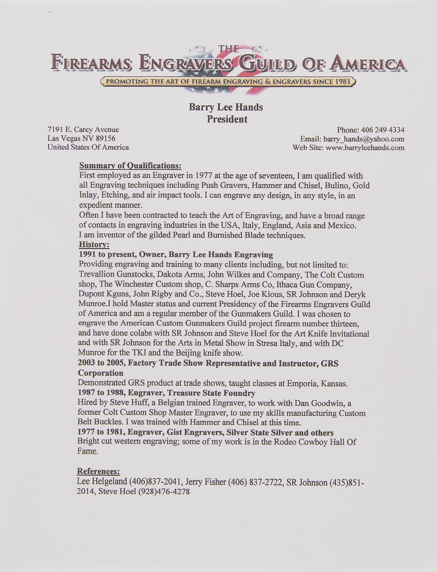 Barry Lee Hands (then-president, Firearms Engravers Guild of America)