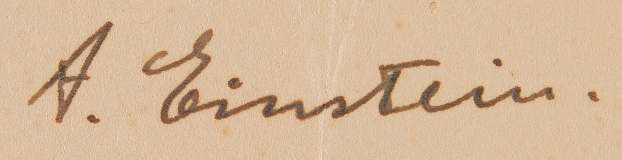 TLS in German, signed “A. Einstein,” one page, 8.5 x 11, July 27, 1934. Letter to Theodore Menzel, a German national and American resident who had initiated a correspondence with the theoretical physicist in late November 1933. Einstein, replying to Menzel's persistent requests to answer some scientific questions, assents to his pleas to meet in person. In full (translated): "Your letter indicates that you prefer to pose your questions to me orally. This can certainly be done some morning by prior arrangement. P.S. My wife is in Europe." In very good to fine condition, with light toning and soiling, binder dings to edges, and two file holes to the left edge. Encapsulated and graded by PSA/DNA as "GEM MT 10." Accompanied by Menzel's retained copies of his July 25th, July 31st, and August 24th letters to Einstein, with full translations. On the 25th, Menzel expressed that an in-person meeting would be ideal, as it would save Einstein “the effort of a time-consuming written exchange of views.”