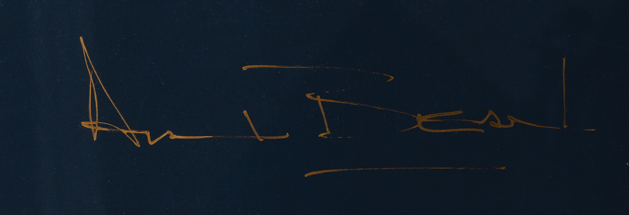 Color 28 x 23 poster print of Alan Bean's painting 'For One Priceless Moment,' honoring the 20th anniversary of Apollo 11, signed in the lower border in gold ink, "Alan Bean." Rolled and in fine condition, with some small creases and scuffs in the wide side borders.