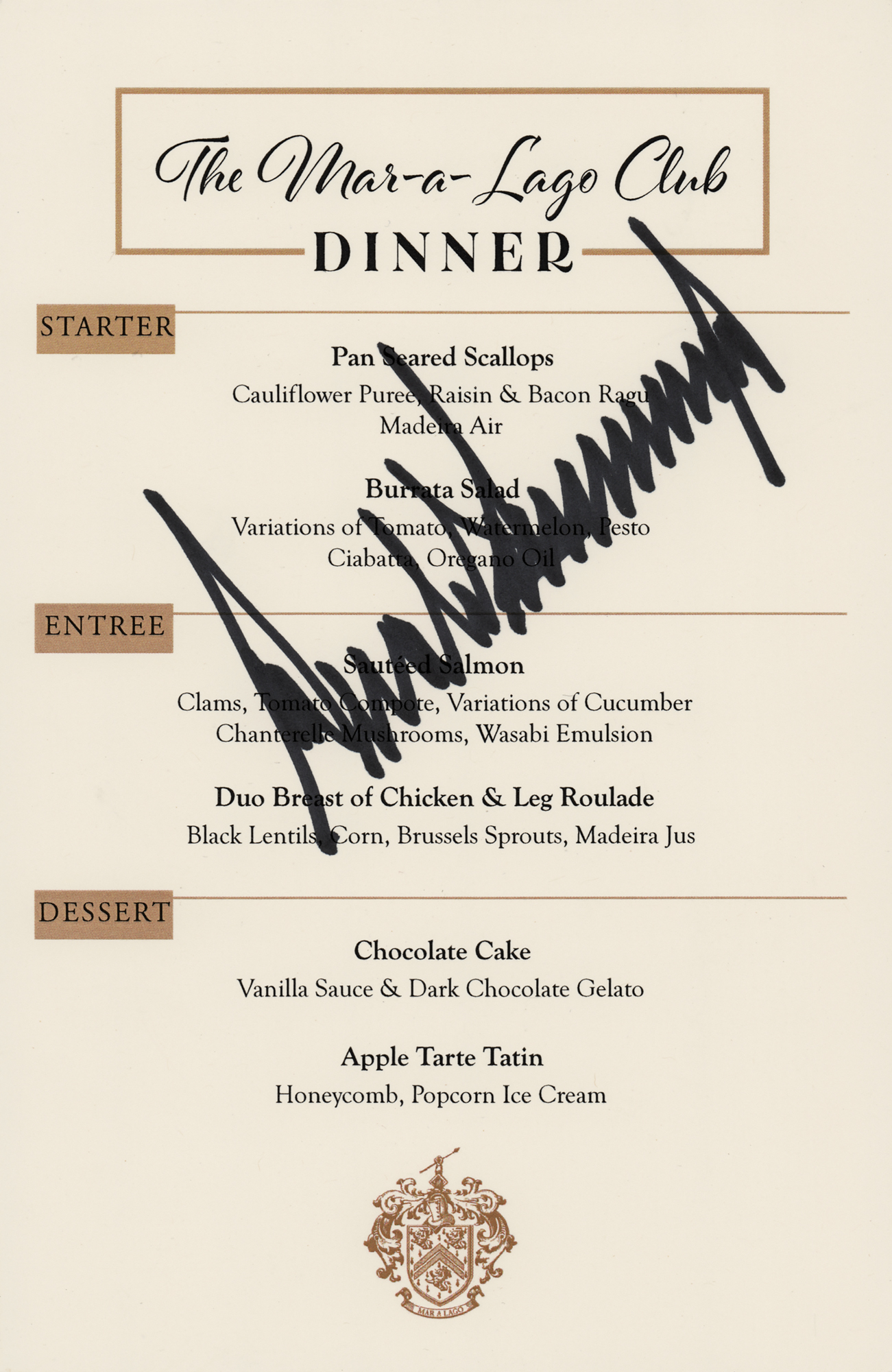 Donald Trump Signed Mar-a-Lago Dinner Menu