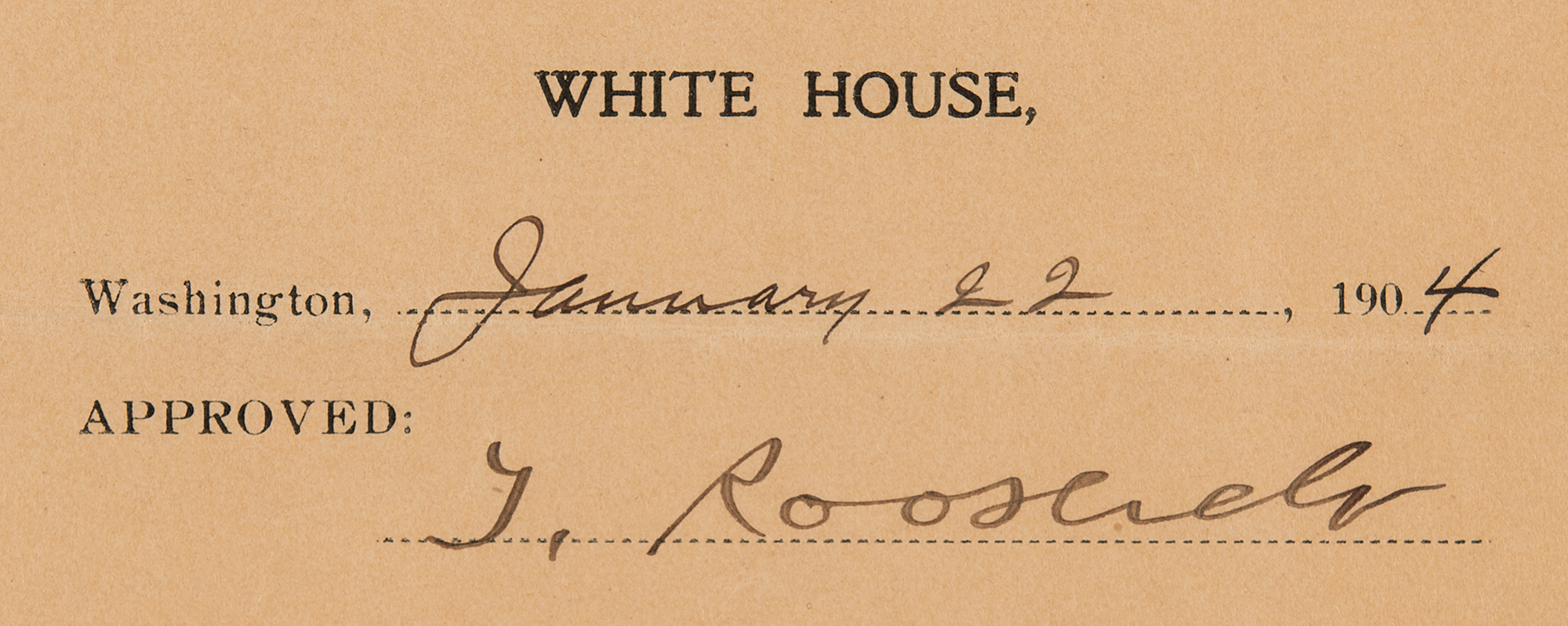 Theodore Roosevelt Document Signed as President, Approving an Act of the Cherokee Nation