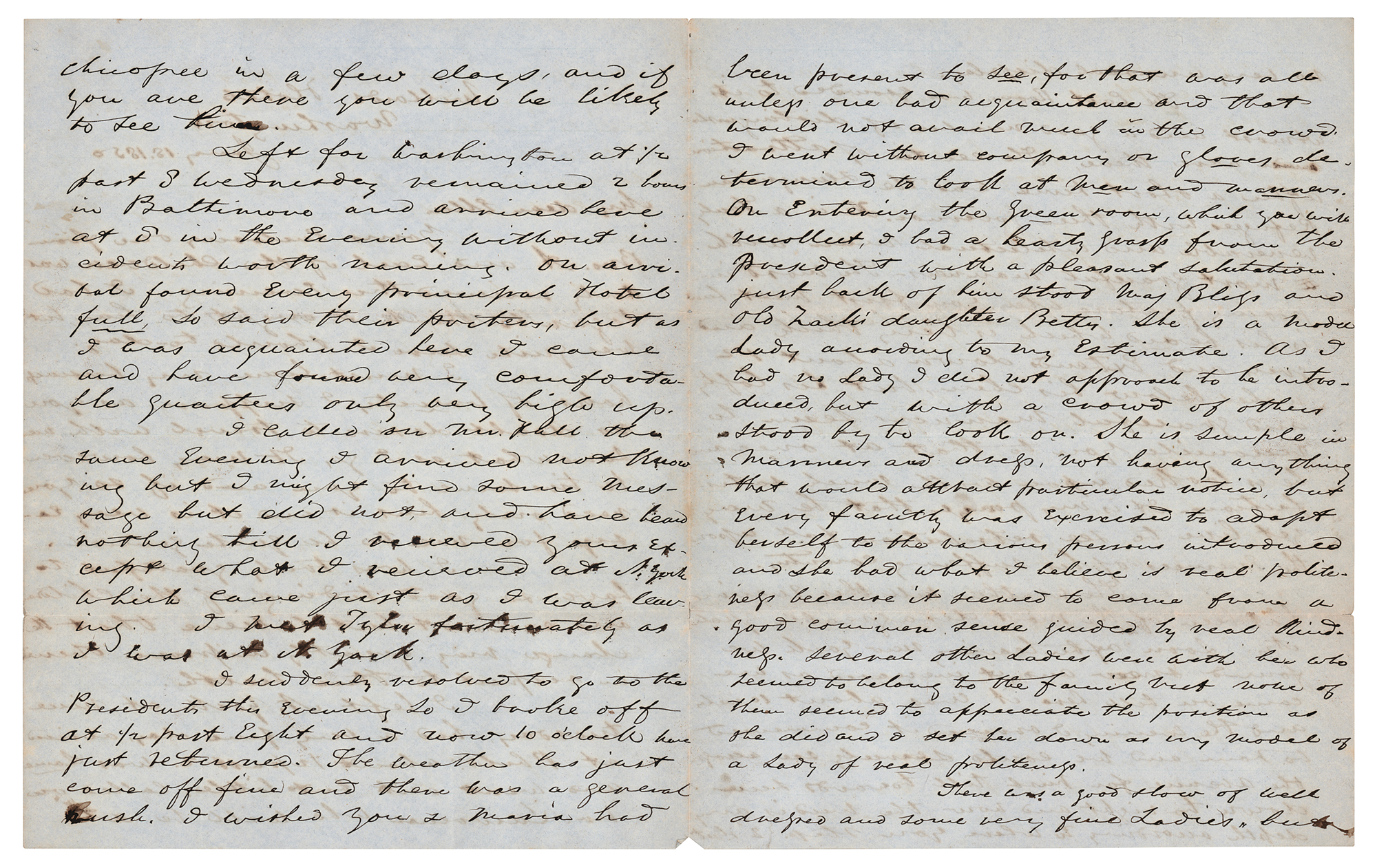 A White House welcome from President Zachary Taylor—"On entering the Green Room, which you will recollect, I had a hearty grasp from the President with a pleasant salutation"