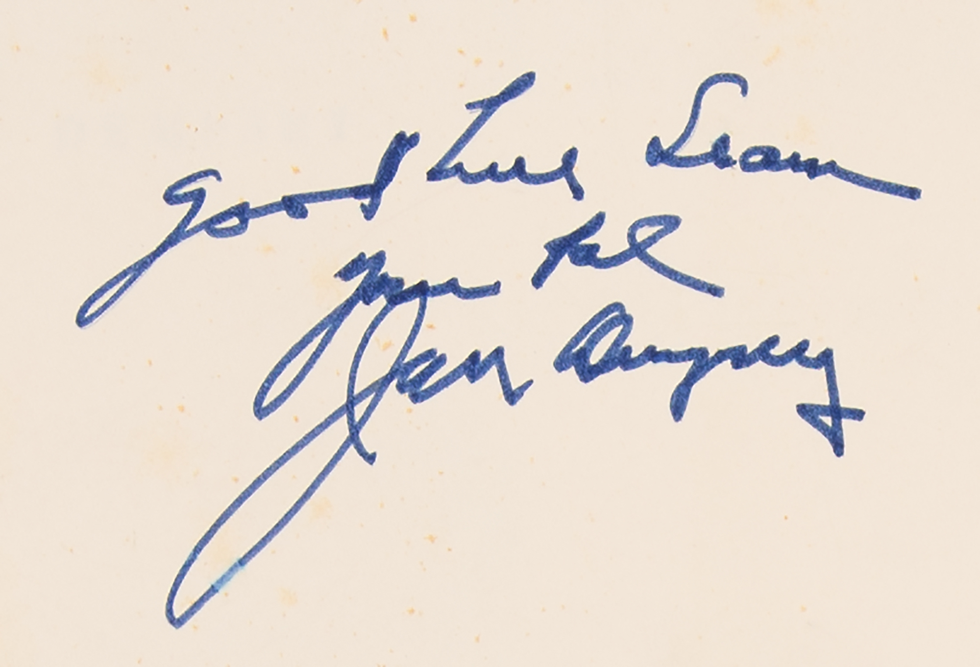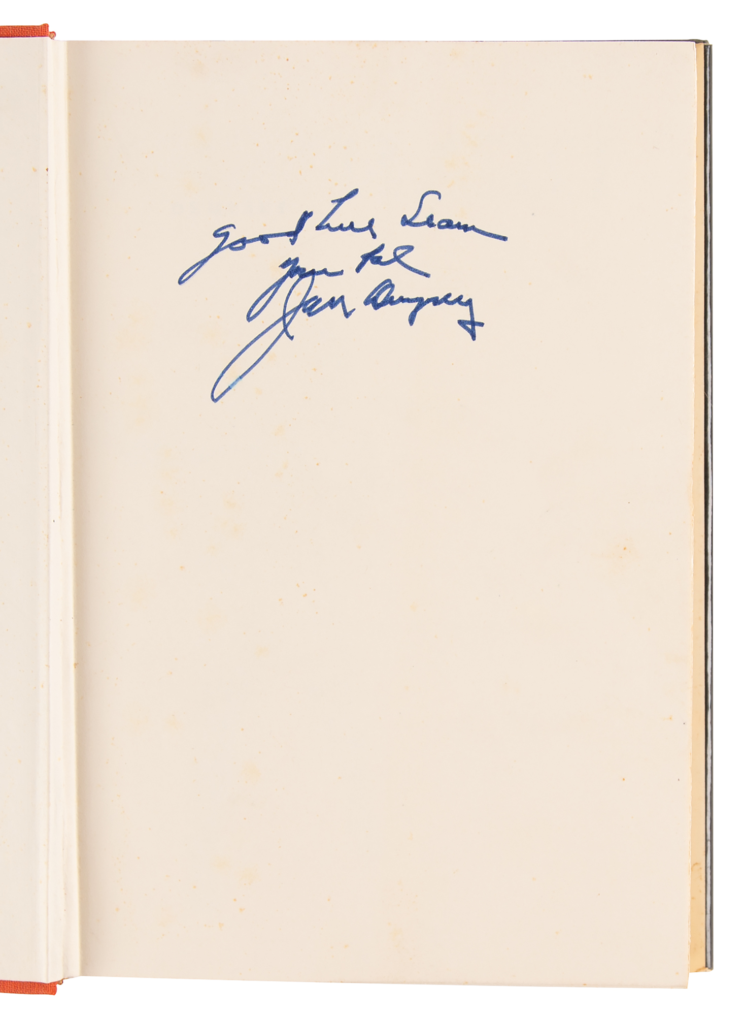 Signed book: Dempsey. First edition. NY: Harper & Row, 1977. Hardcover with dust jacket, 6.5 x 9.5, 320 pages. Signed and inscribed on the first free end page in blue felt tip, "Good luck Sean, your pal, Jack Dempsey." In very good to fine condition, with some very faint foxing to the signed page.