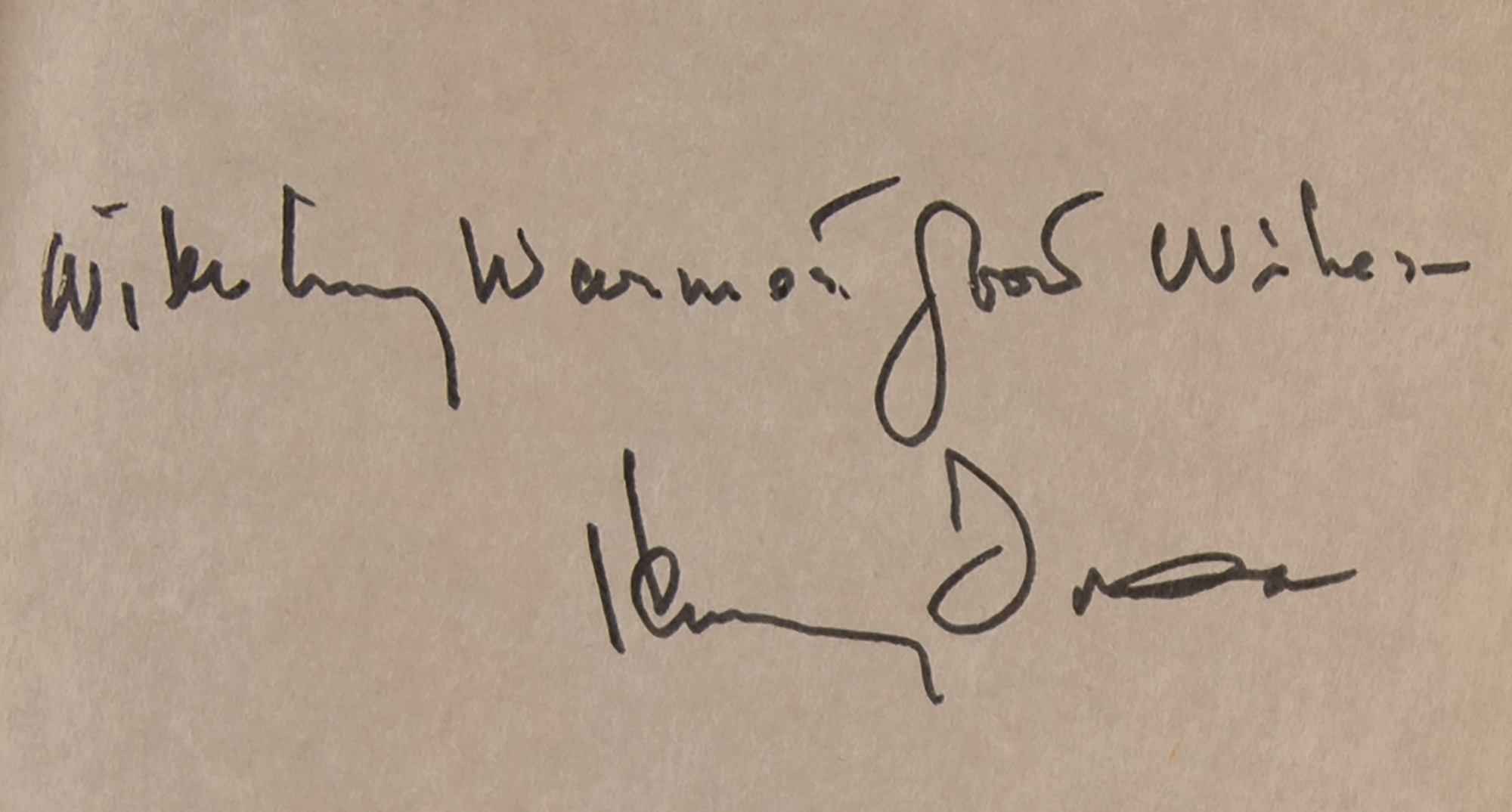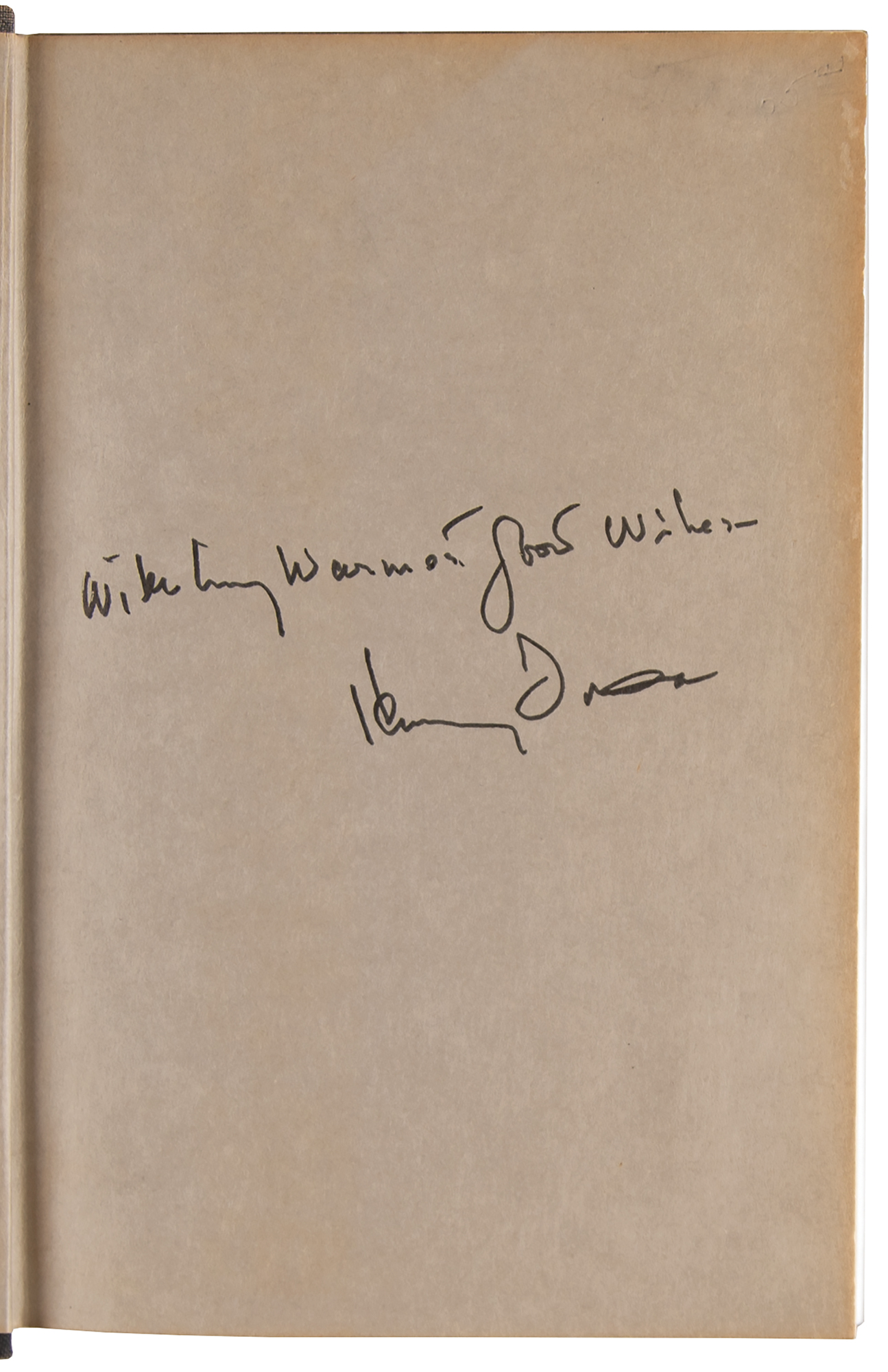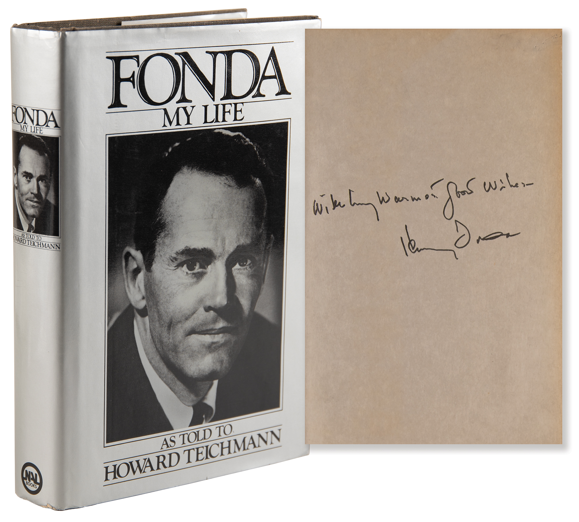 Signed book: Fonda: My Life. First edition. NY: New American Library, 1981. Hardcover with dust jacket, 6.25 x 9.25, 372 pages. Signed on the first free end page in black felt tip, "With my warmest good wishes, Henry Fonda." In fine condition, with light edge toning.