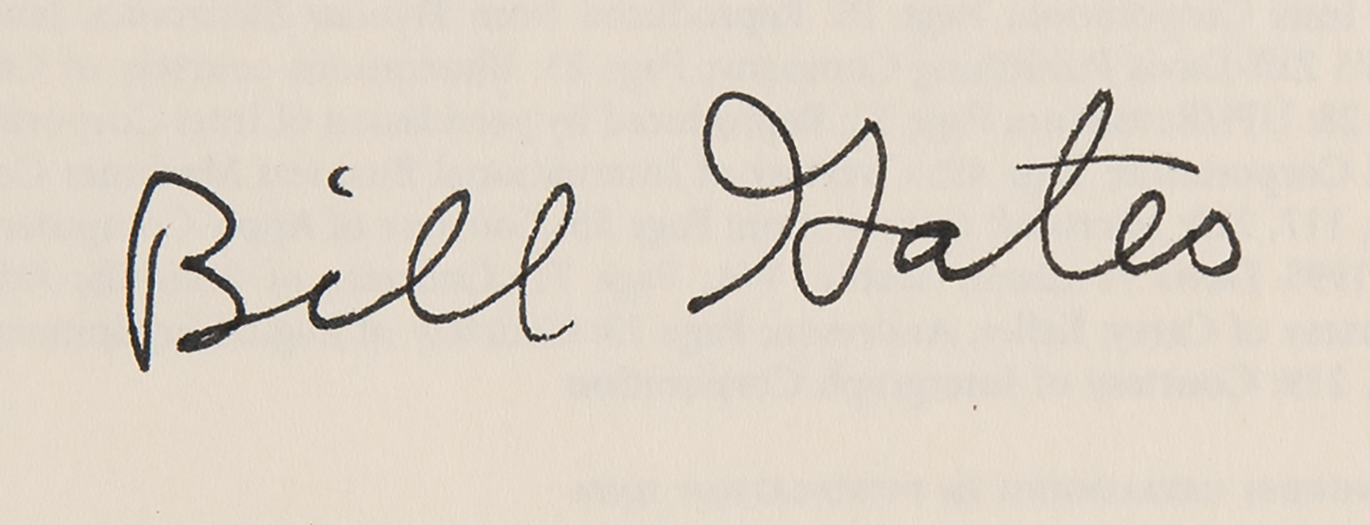 Signed book: The Road Ahead. Later printing. NY: Viking, 1995. Hardcover with dust jacket, 6.5 x 9.5, 286 pages. Signed on the title page in black felt tip, "Bill Gates." Complete with its included CD-ROM. In fine condition.