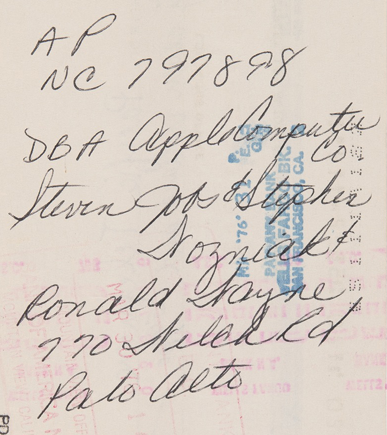 Marked as check "No. 6," this ultra-early check pre-dates the official founding of Apple Computer, Inc. – just four days later, on April 1, 1976, co-founders Steve Jobs, Steve Wozniak, and Ronald Wayne would sign the partnership agreement that officially brought Apple Computer into existence. Twelve days after the company’s establishment, Wayne sold his 10% share of the new company back to Jobs and Wozniak for $800, and one year later accepted a final $1,500 to forfeit any potential future claims against the newly incorporated company.