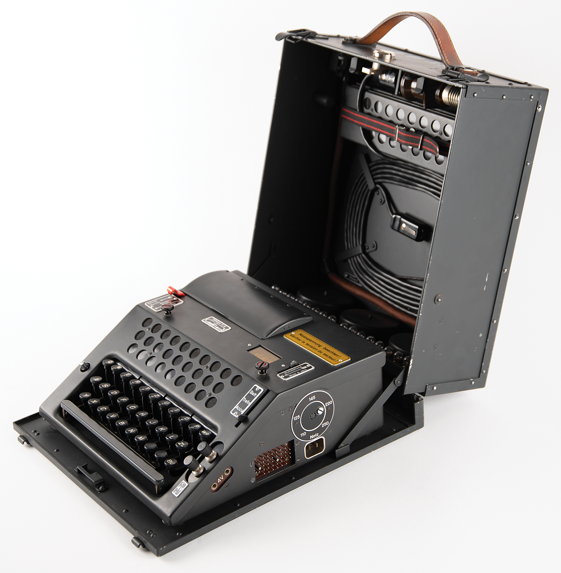 Well-preserved example of the Swiss successor to the Enigma machine: "Only issue in case of war mobilization!"