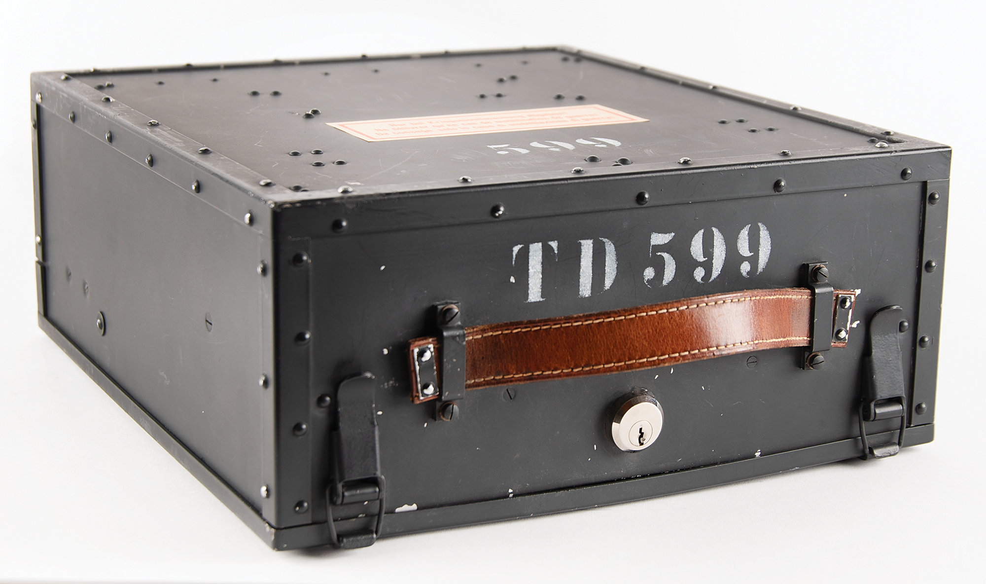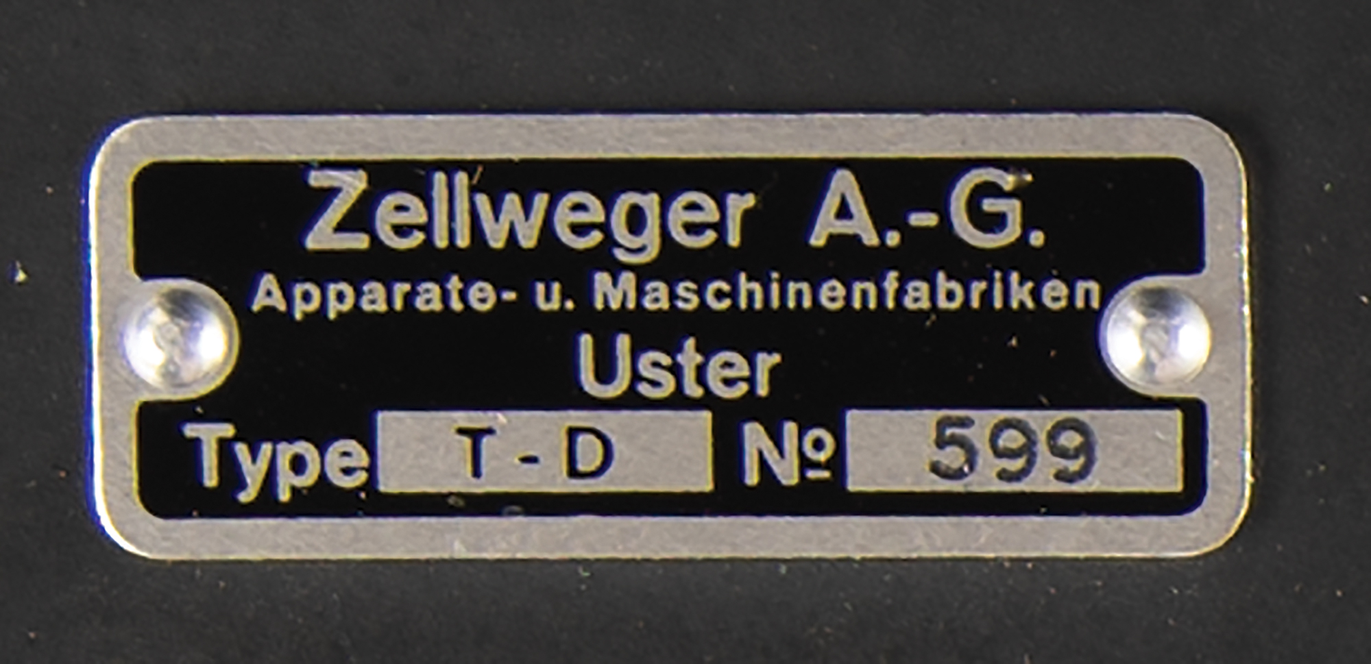 Well-preserved original Swiss NEMA Model 45 cipher machine, serial no. TD-599, developed by Zellweger AG in Uster, Switzerland, during World War II as a replacement for the German Enigma Model K that was being used by the Swiss Army. The machine is also known as T-D, which stands for Tasten-Drücker Maschine (key-press machine).