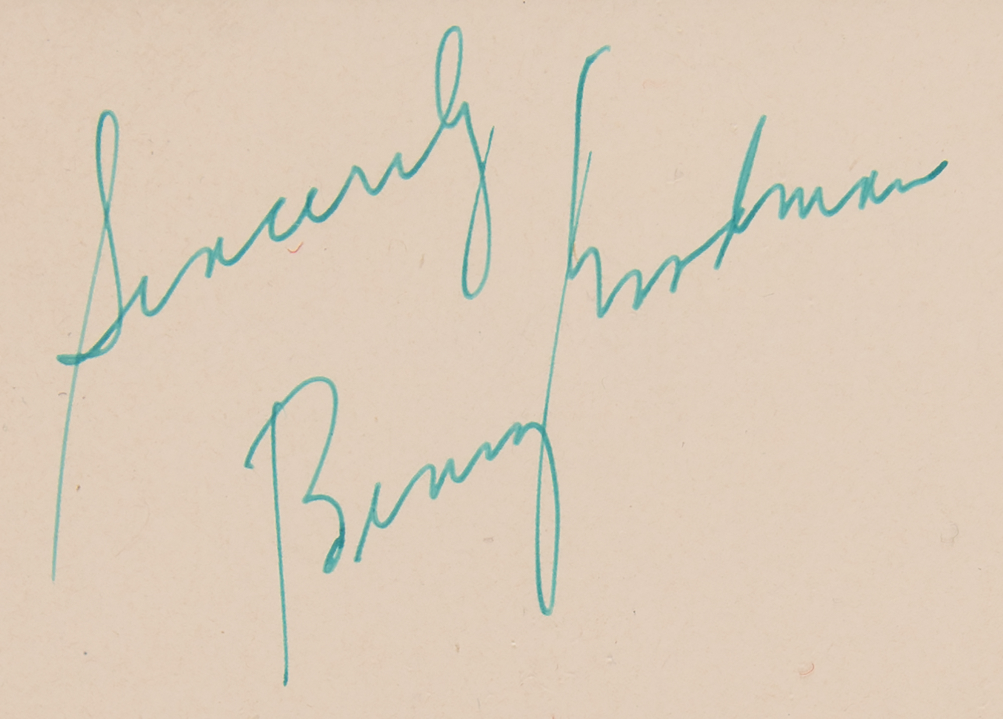 Signed book: The Kingdom of Swing. First edition. NY: Stackpole Sons, 1939. Hardcover, 5.25 x 8.25, 265 pages. Signed on the frontispiece portrait in fountain pen, "Sincerely, Benny Goodman." In fine condition, with light wear to the covers, bumped corners, and an ownership inscription to front pastedown.