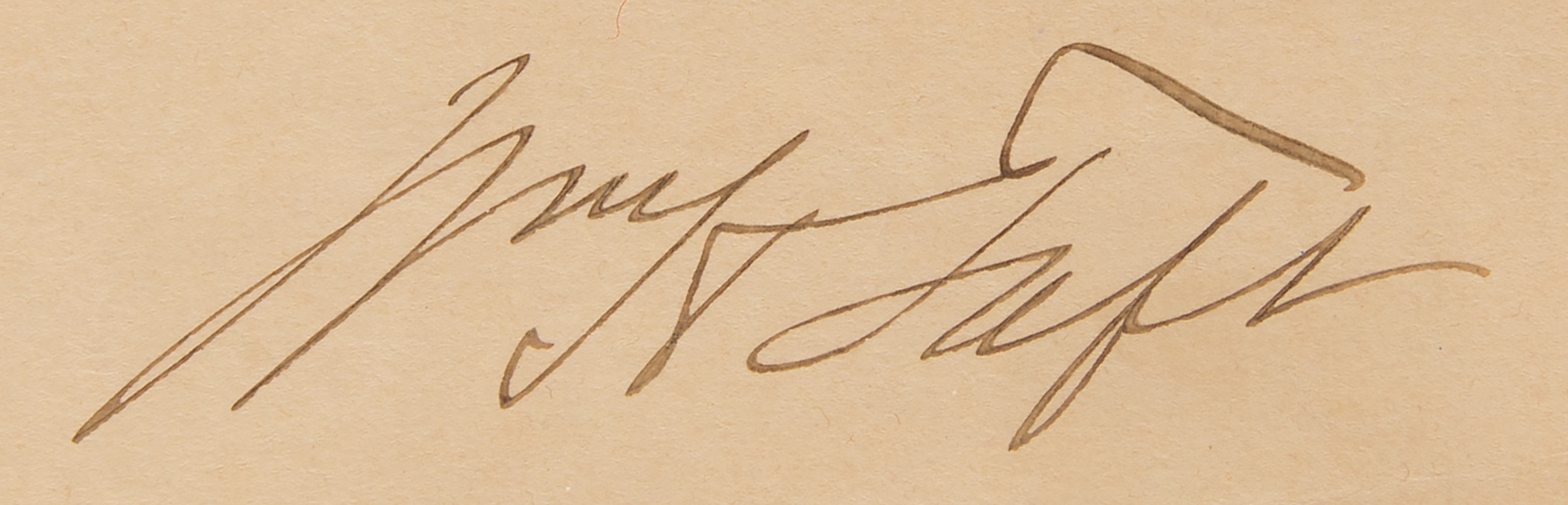 Partly-printed DS as president, signed “Wm. H. Taft,” one page, 16 x 19.5, November 15, 1909. President Taft appoints Stewart E. Barber as a "Paymaster in the Navy, with the rank of Lieutenant." Signed at the conclusion by William H. Taft and countersigned by Secretary of the Navy George von L. Meyer. The lower left retains the original blue embossed Navy Department seal. Rolled and in very good to fine condition, with creasing to the edges, loss to the lower right corner, and tears to two edges.