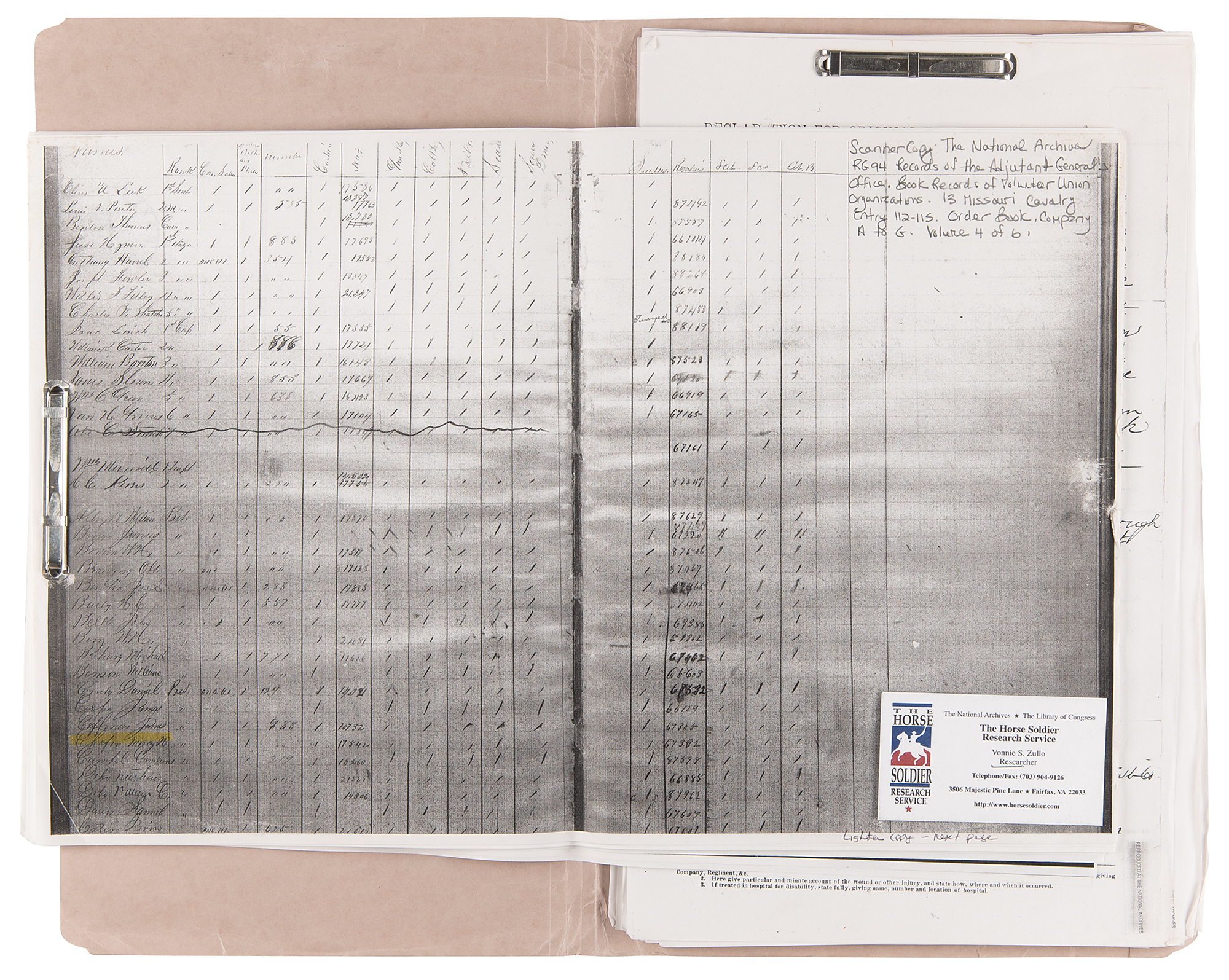 Accompanied by ample copies of paperwork and provenance related to Chafin’s military career, including a copy of the ‘Records of the Adjutant General’s Office’ for the 13th Missouri Cavalry Regiment, which lists the revolver’s serial number as having been issued to Chafin.