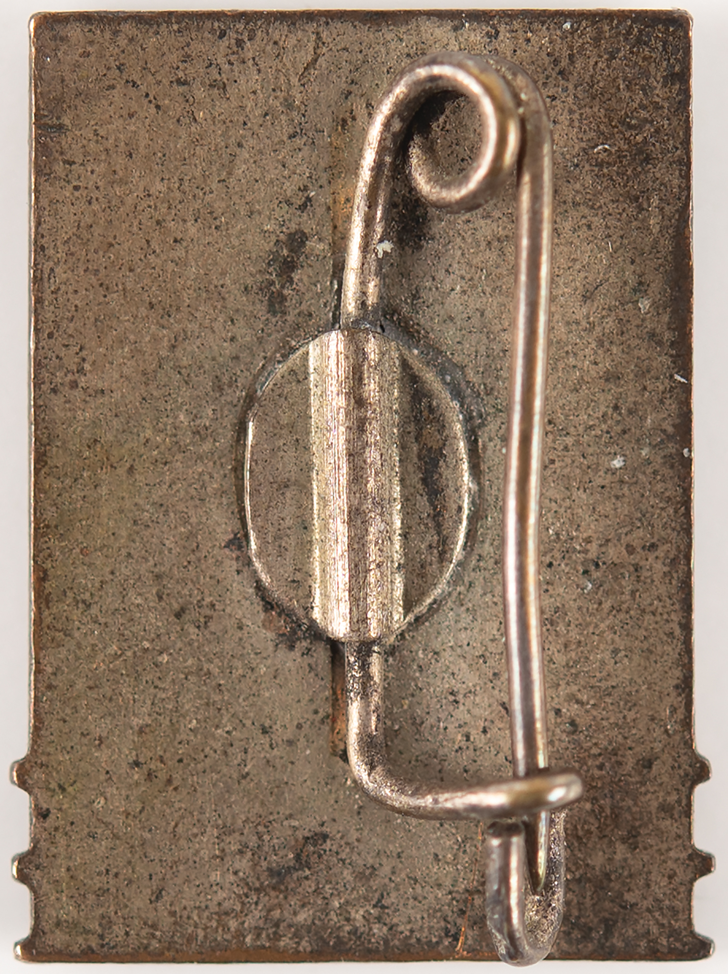 Participation pin from the Helsinki 1952 Summer Olympics, measuring 13 mm x 20 mm, which features blue and white enamel design of the emblem of the 1952 Summer Games, with the lower bar bearing raised text: “XV Olympia, Helsingfors.” In fine condition, with light wear and a tiny chip to enamel inside the central Olympic ring.