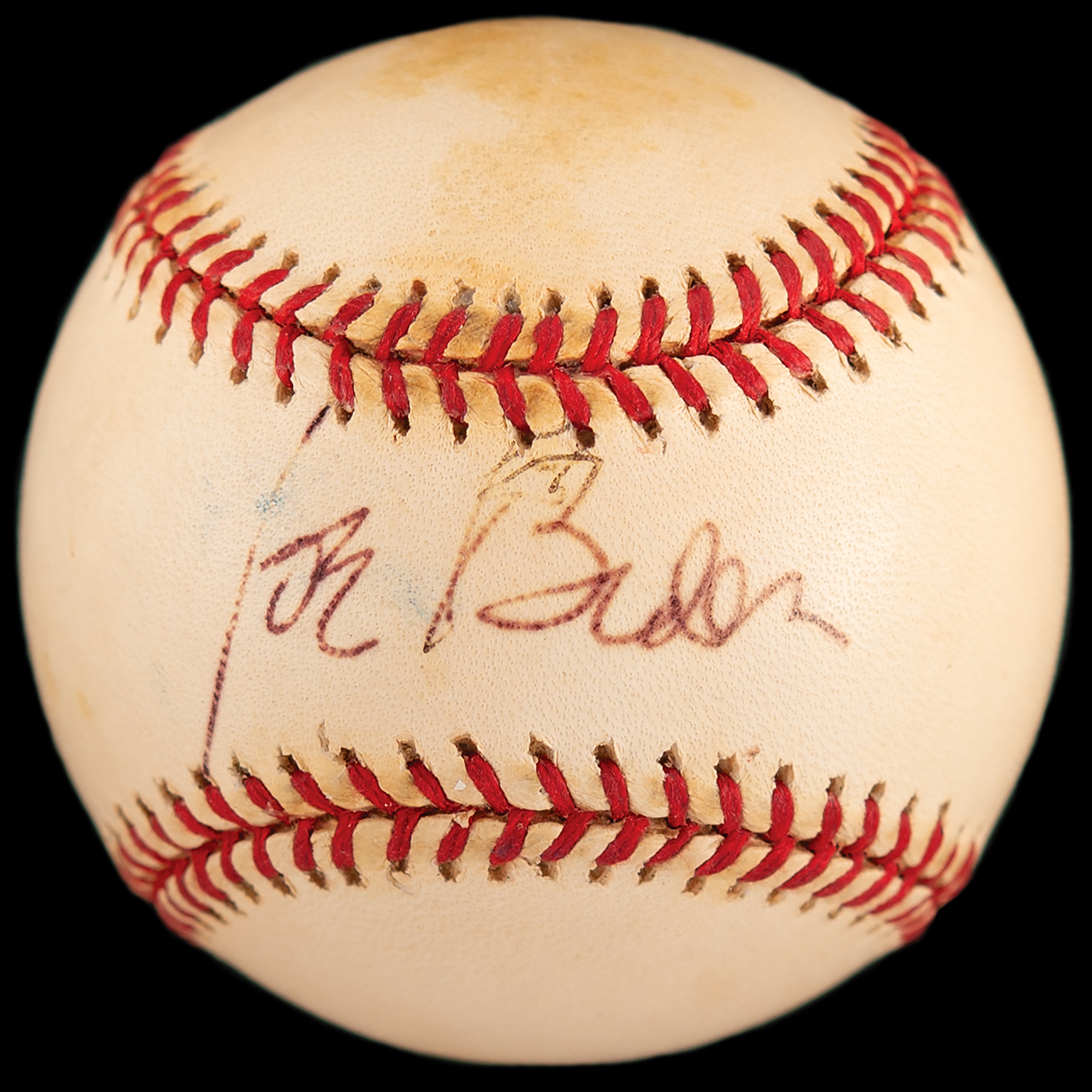Superb set of five official Rawlings baseballs individually signed on the sweet spot in ink or felt tip by an American president: Joe Biden, George Bush, George W. Bush, Bill Clinton, and Barack Obama. In overall very good to fine condition, with varying degrees of toning to each ball, and some pen trouble to the Biden signature. A sought-after group of presidentially signed baseballs, a sought-after format that combines America's history with its national pastime.