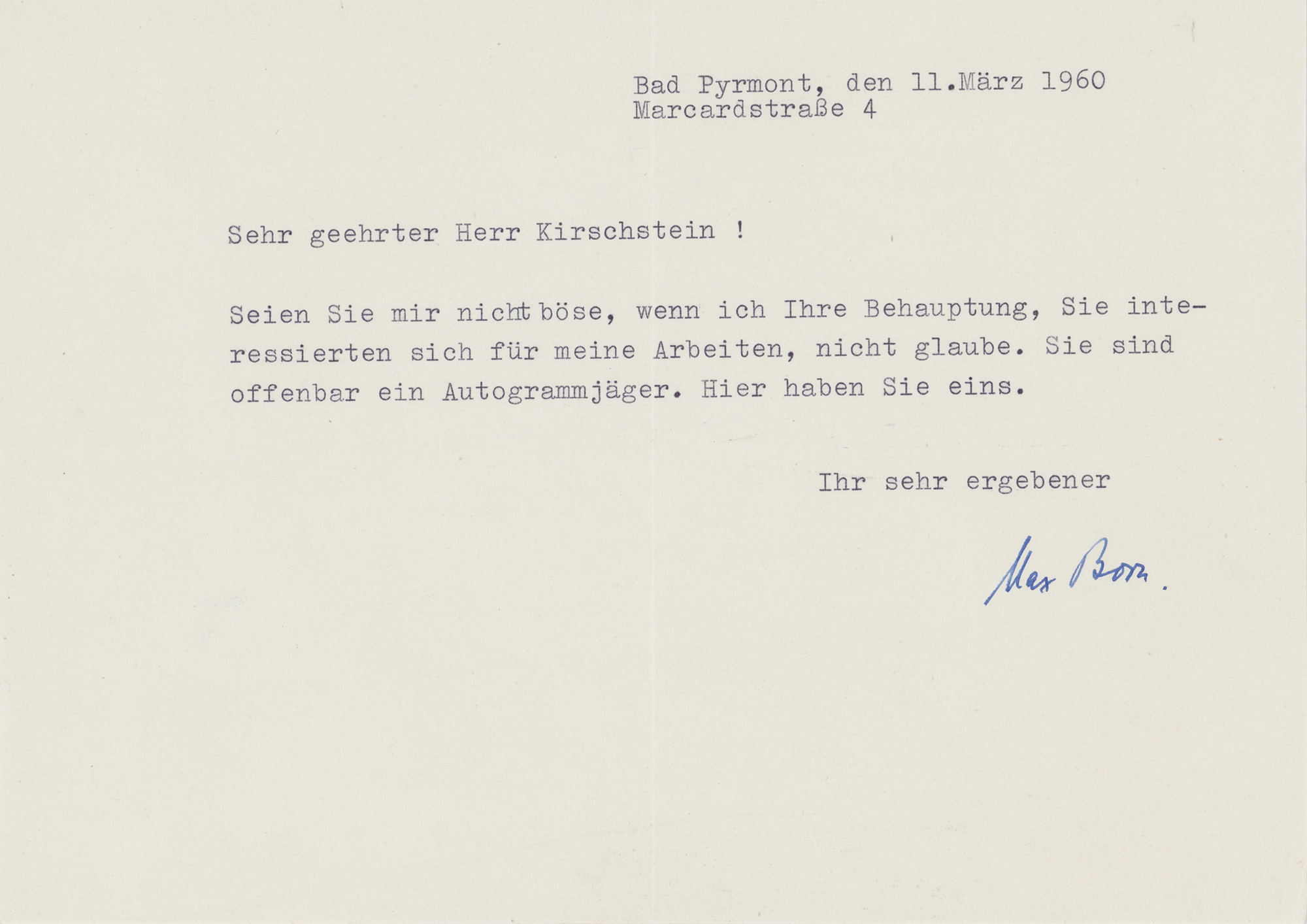 Max Born Typed Letter Signed: "You are obviously an autograph hunter"