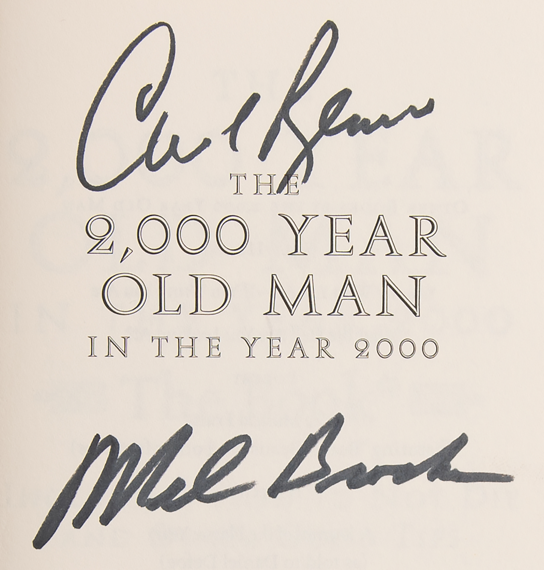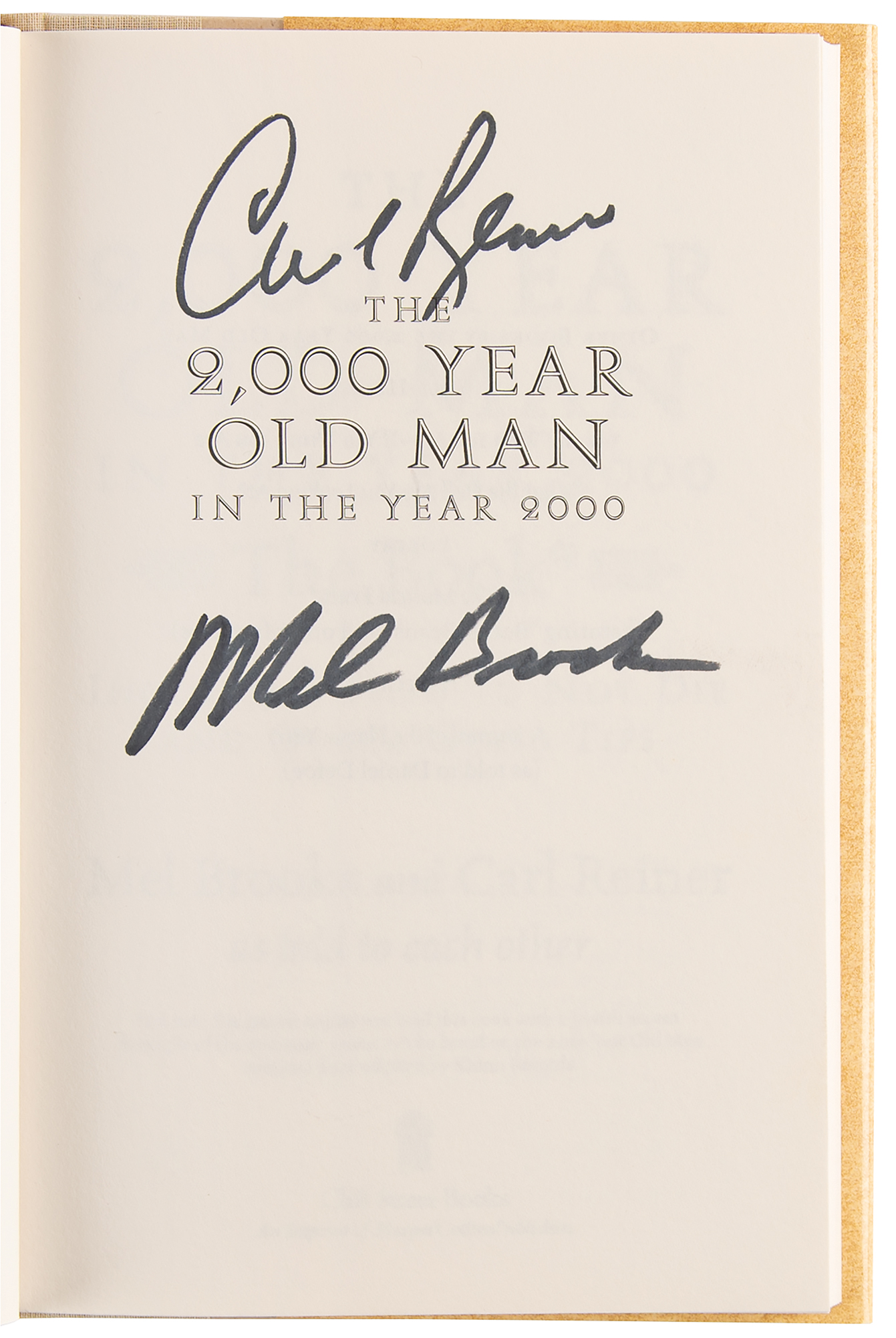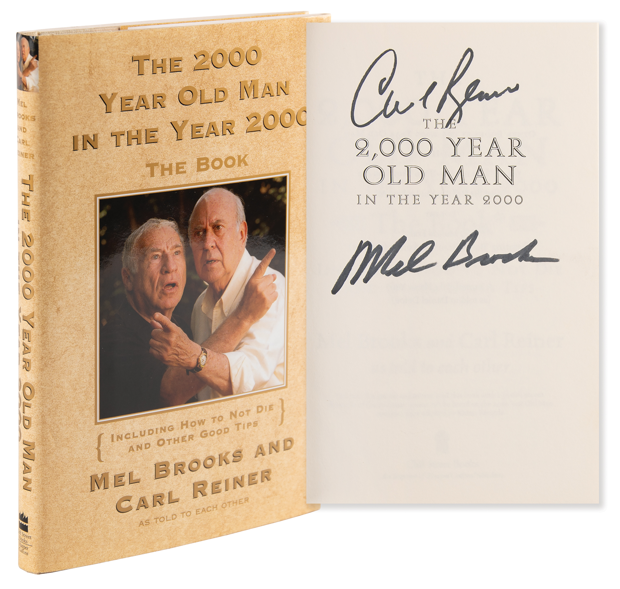 Signed book: The 2000 Year Old Man in the Year 2000. First edition. NY: Cliff Street Books, 1997. Hardcover with dust jacket, 5.75 x 8.5, 127 pages. Signed on the half-title page in black felt tip by Mel Brooks and Carl Reiner. In fine condition.