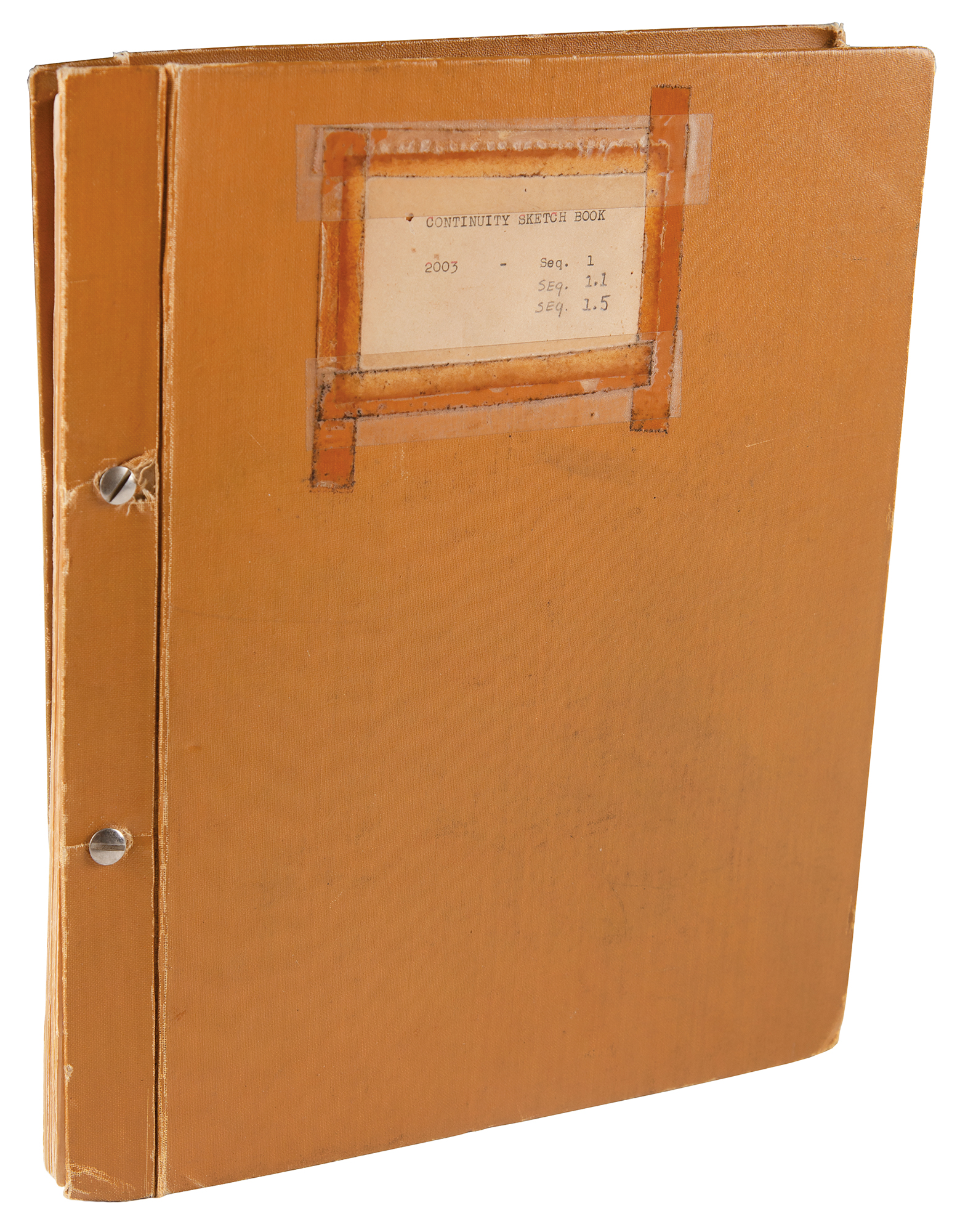 The book is presented as a rivet-bound binder with beige boards, 10.5˝ x 12.5˝, the front of which bears an affixed title label, “Continuity Sketch Book, 2003 - Seq. 1, Seq. 1.1, Seq. 1.5.” The book is essentially divided into three sections: Sequence 1 (pgs. 1-22, scenes 1-17), Sequence 1.1 (pgs. 25-71, scenes 1-89), and Sequence 1.5 (pgs. 73-127, with two pages marked 115, and pages 3, 13, and 24 also found in this section; this sequence focuses on scenes numbered from 2 to 51, though not all scenes accounted for). To classify their ongoing animation projects, Disney numbered their feature-length films in the 2000s and their studio’s shorts in the 1000s. Snow White was 2001, Bambi was 2002, and Pinocchio was 2003; when early script problems with Bambi proved intractable, Walt Disney decided to move forward with development for Pinocchio.