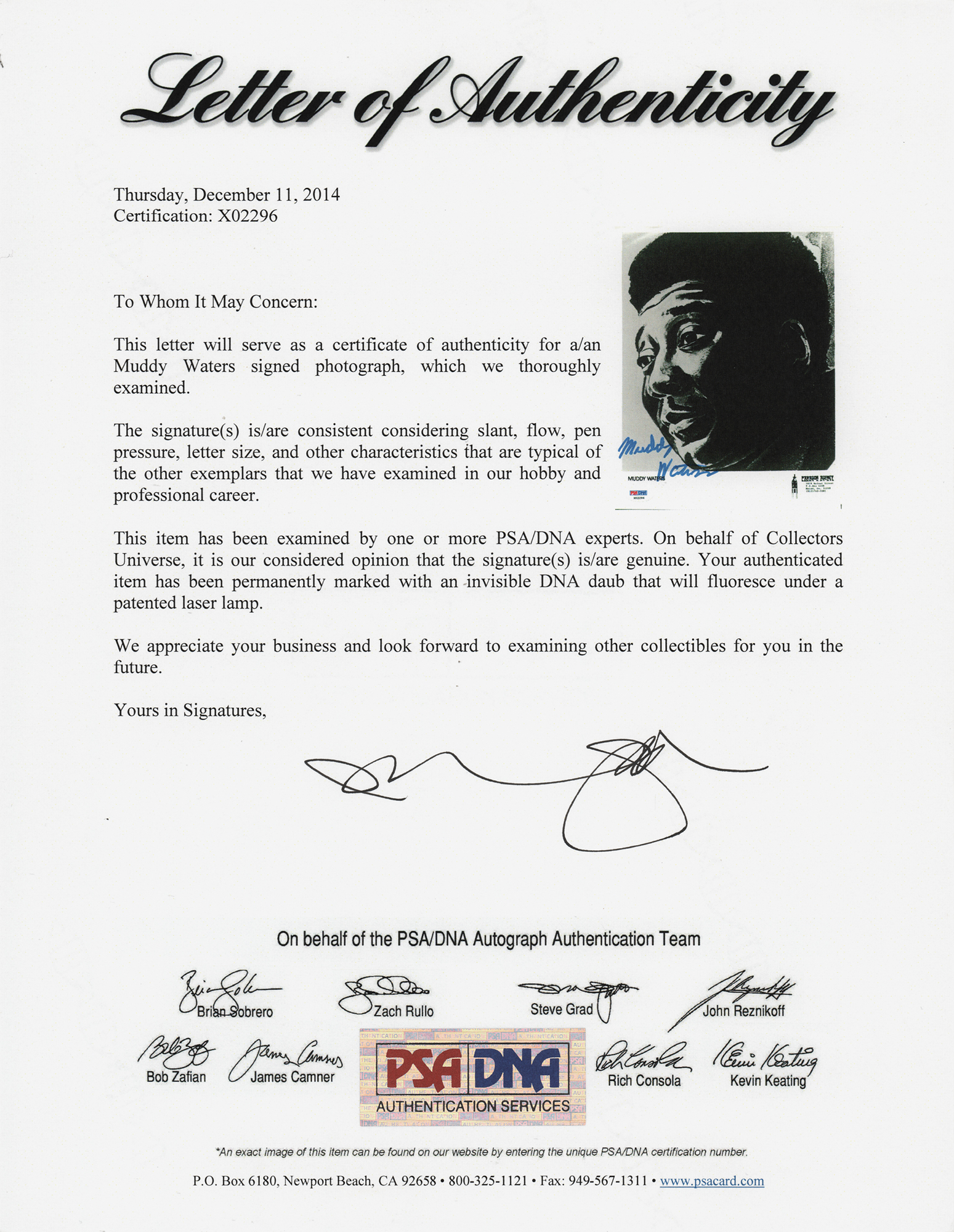 Muddy Waters Signed Photograph