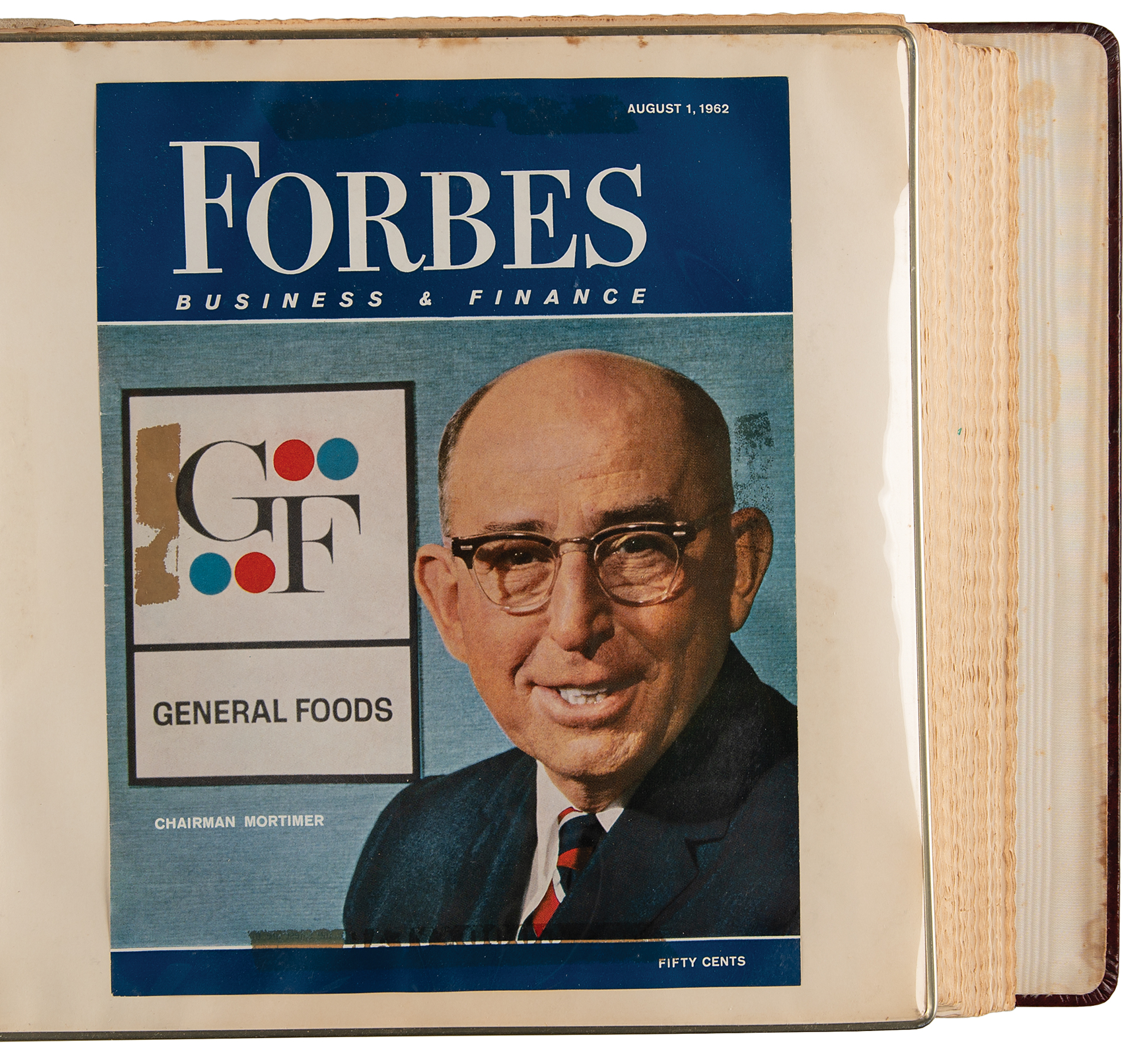 Accompanied by supporting documentation, both visual and printed, related to Mortimer’s acceptance of the position and the historic launch of the United Negro College Development Campaign, and Mortimer’s personal leather-bound retirement scrapbook, which contains copious photographs, articles, and keepsakes related to his prodigious career with General Foods and his lifelong support of education, youth and public service activities, American free trade, and the Civil Rights movement; among them are front covers from Time magazine (December 7, 1959) and Forbes magazine (August 1, 1962), which both depict Mortimer as the chairman of General Foods.