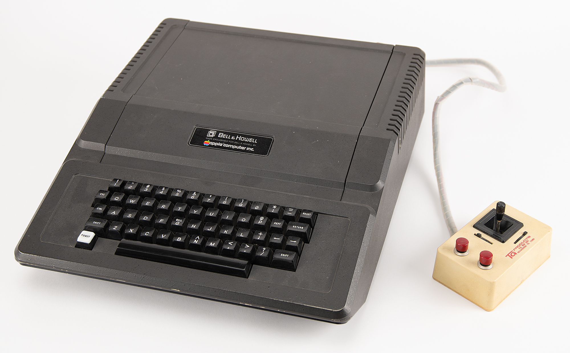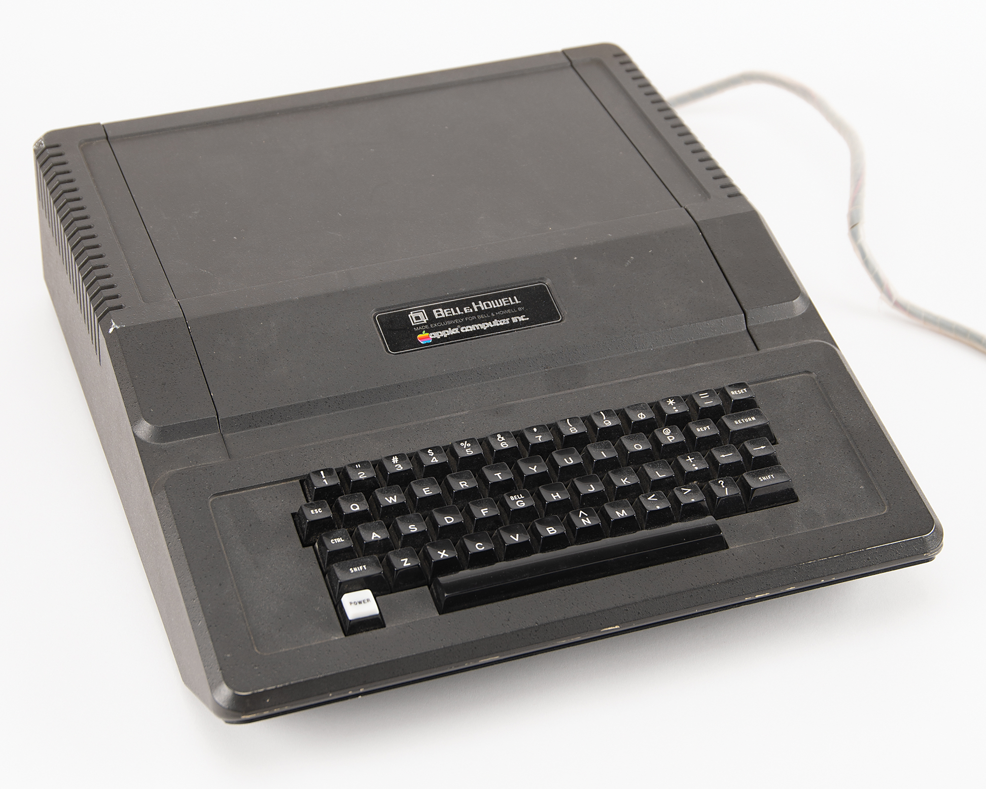 The Bell & Howell Apple II is quite scarce and sought-after by collectors, given its eye-catching color. Introduced in 1979, this was the only black computer manufactured by Apple until the release of the Macintosh TV in 1993. Modifications made for the Bell & Howell unit allowed it to be UL-certified – a safety necessity for sales to some school districts.