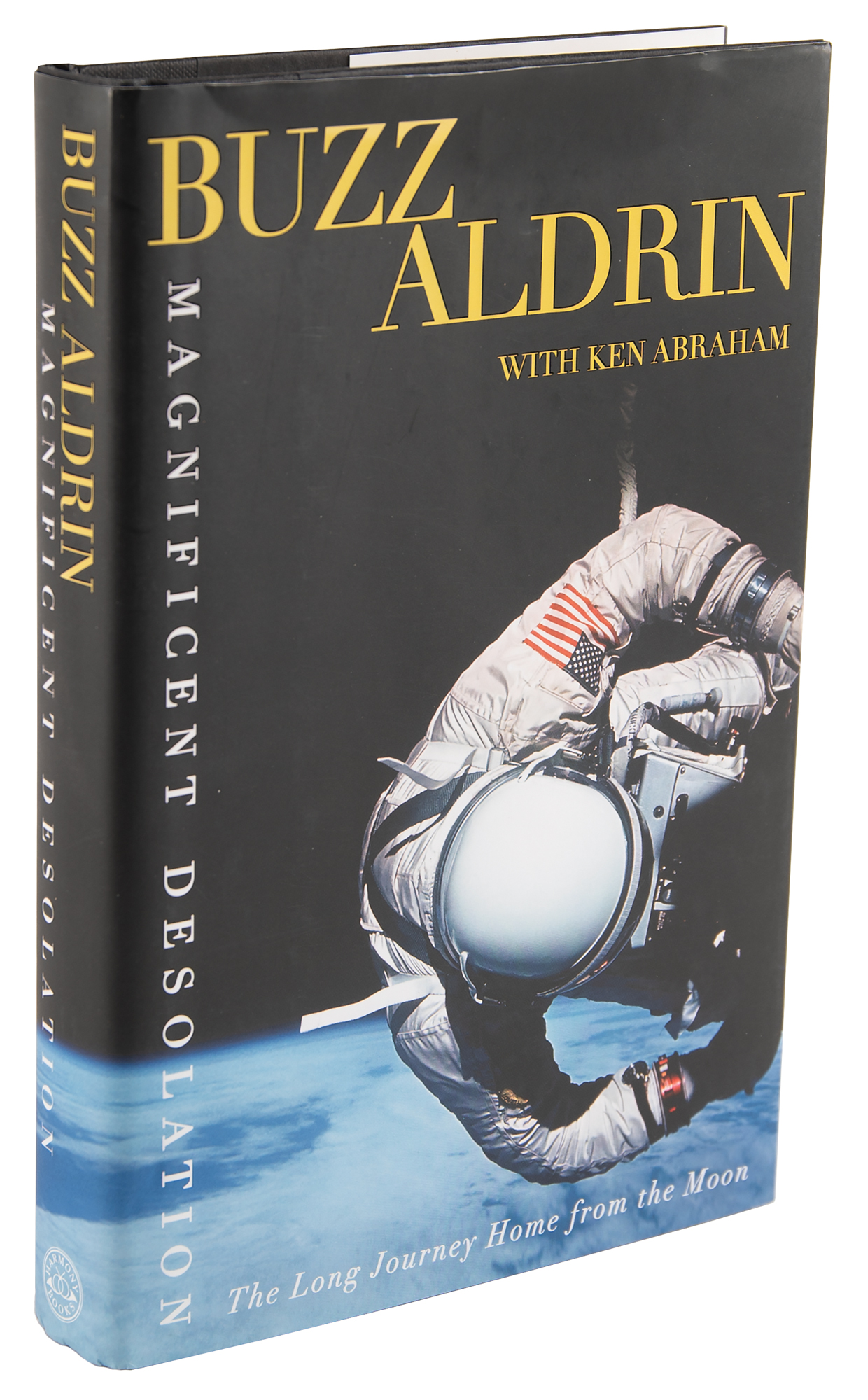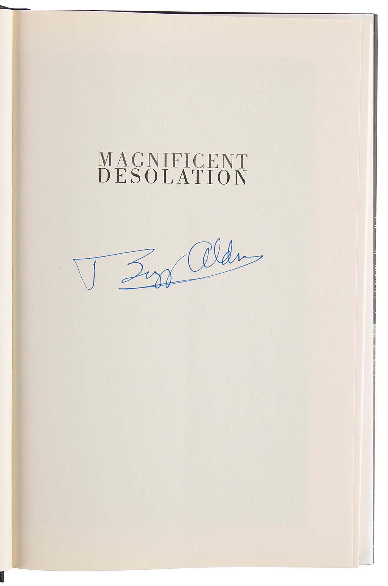Signed book: Magnificent Desolation. First edition. NY: Harmony Books, 2009. Hardcover with dust jacket, 6.5 x 9.5, 326 pages. Signed on the half-title page in blue felt tip by Buzz Aldrin. In very fine condition.