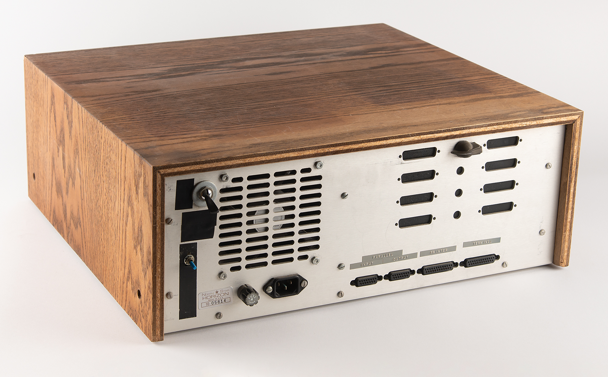 North Star Horizon 8-bit S-100 bus personal computer manufactured by North Star Computers of Berkeley, California, and released in October 1977. The manufacturing label to the back is marked as “10-05814.” Purchased either in kit form or pre-assembled, the Horizon was one of the first computers to have built-in floppy drives, as well as being one of the first personal computers to have a hard disk drive. Housed in its walnut-stained plywood case, 20˝ x 7.5˝ x 17.5˝, the Horizon was suited for business, education, and software development applications, and ran on a Z-80 microprocessor that ran at 4 MHz. It contained 16 KB of RAM, which could be expanded to 64 KB and 1 KB of ROM. The machine had its own operating system, the North Star Disc Operating System, but it could also run CP/M, an early mass-market operating system. The consignor notes that the North Star Horizon has been tested to be in working order; RR Auction has not confirmed the functionality of the computer, which is in fine cosmetic condition, with some scuffs, marks, and toning to the wooden case.