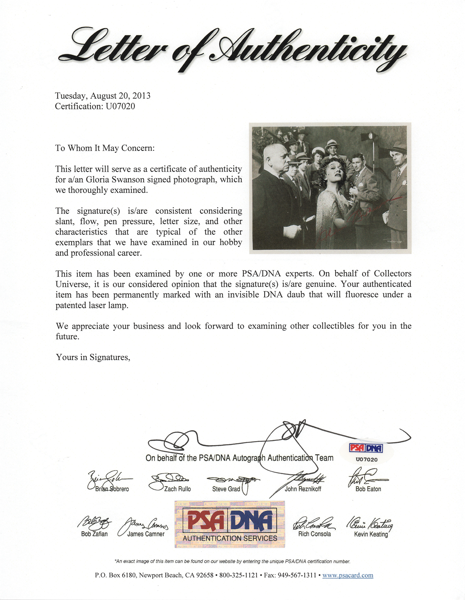 Gloria Swanson Signed Photograph
