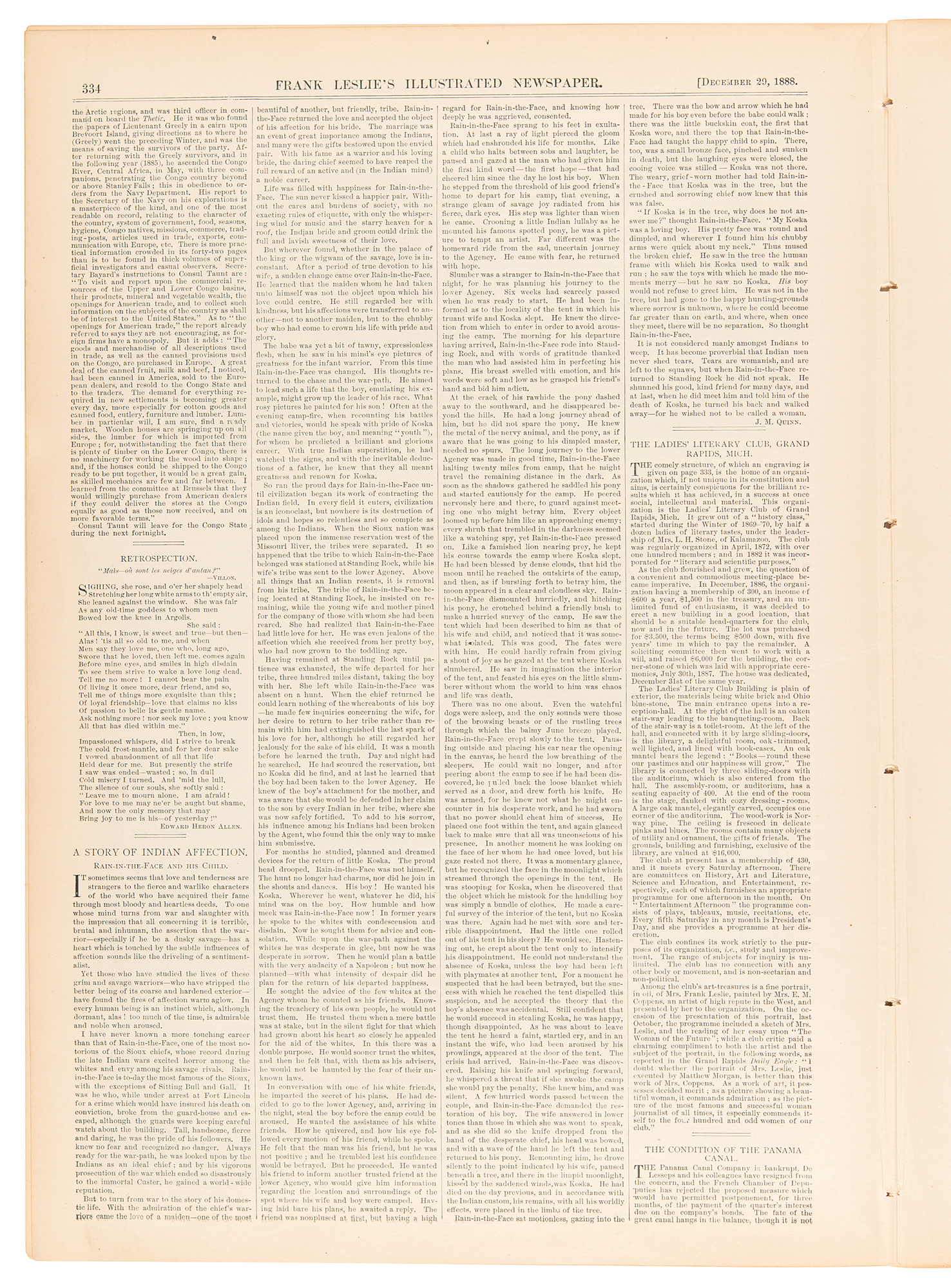 Rain in the Face: Frank Leslie's Illustrated Newspaper from December 29, 1888