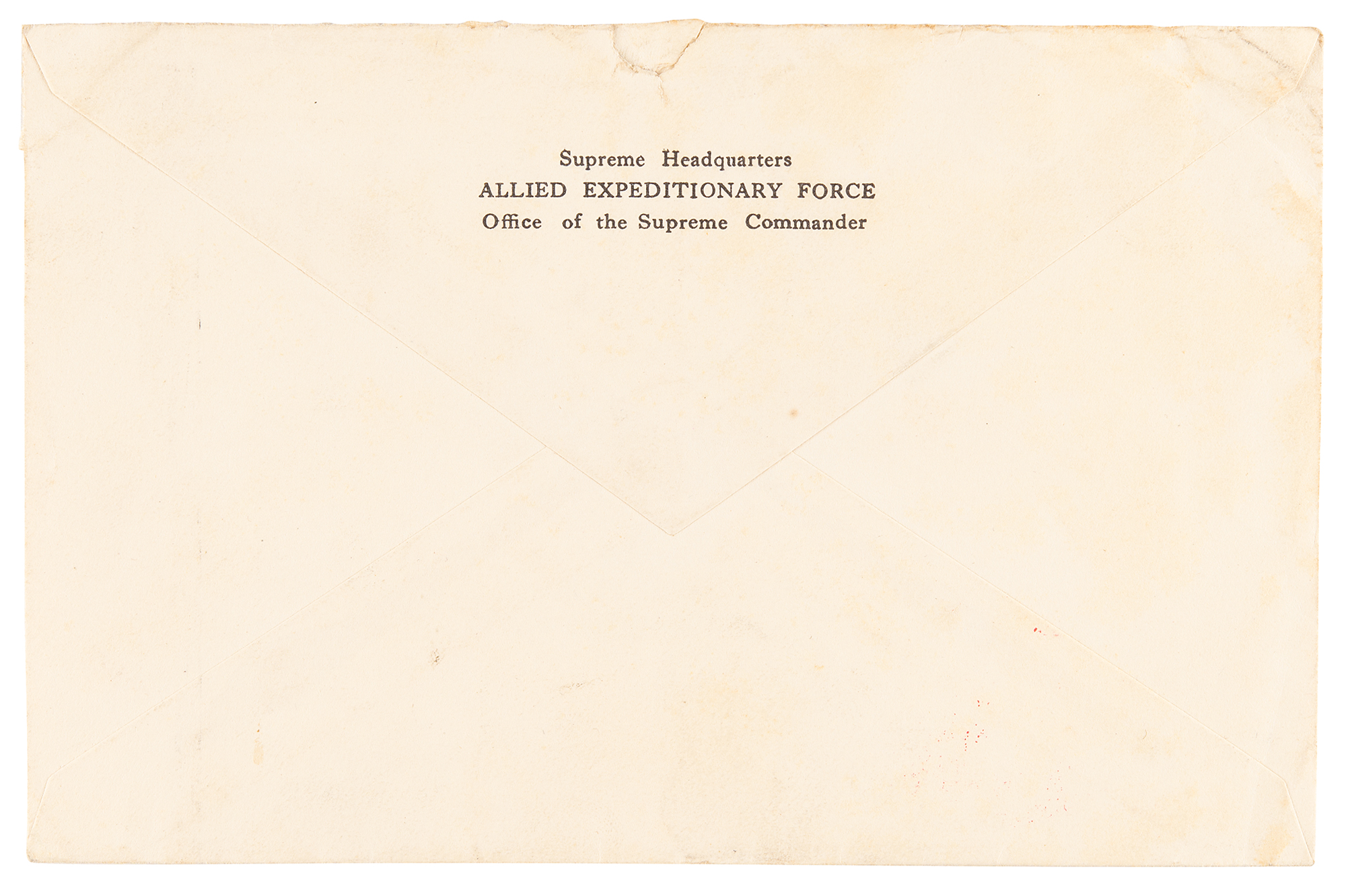 Scarce 1945 presentation sheet for the “Shoulder Sleeve Insignia, Supreme Headquarters, Allied Expeditionary Force,” signed by General Eisenhower a day before Germany’s unconditional surrender and the end of war in Europe
