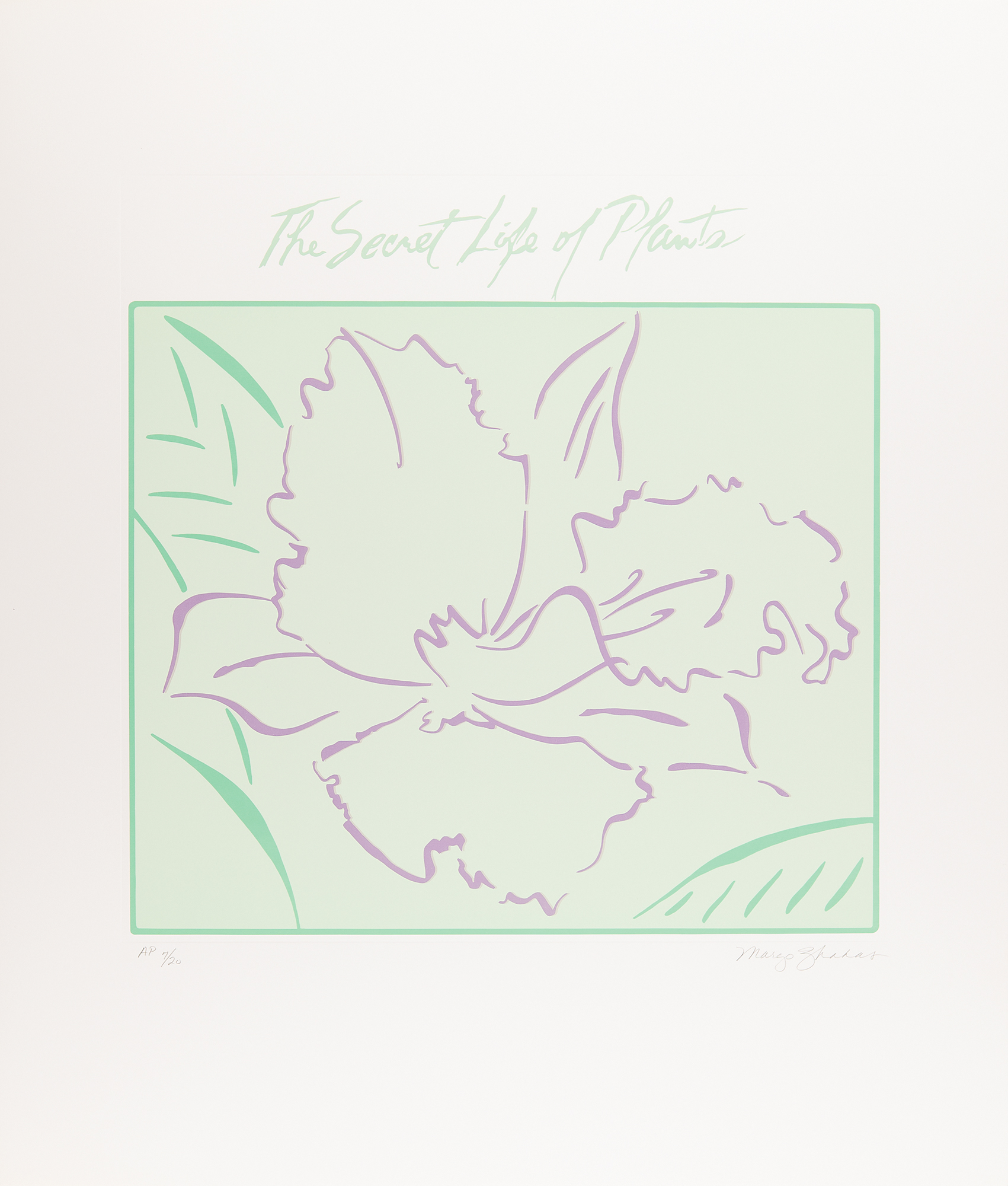 Limited edition color 22.5 x 26.5 high-quality lithograph of Margo Z. Nahas’s cover design for the Stevie Wonder album The Secret Life of Plants, which was released by Tamla Motown on October 30, 1979, numbered AP 7/20, signed in the lower border in pencil by Nahas, who also famously designed the cover art for the Van Halen album, 1984. Printed on Quintessence 100lb dull cover acid-free paper and published by Record Art in 1991. In very fine condition.