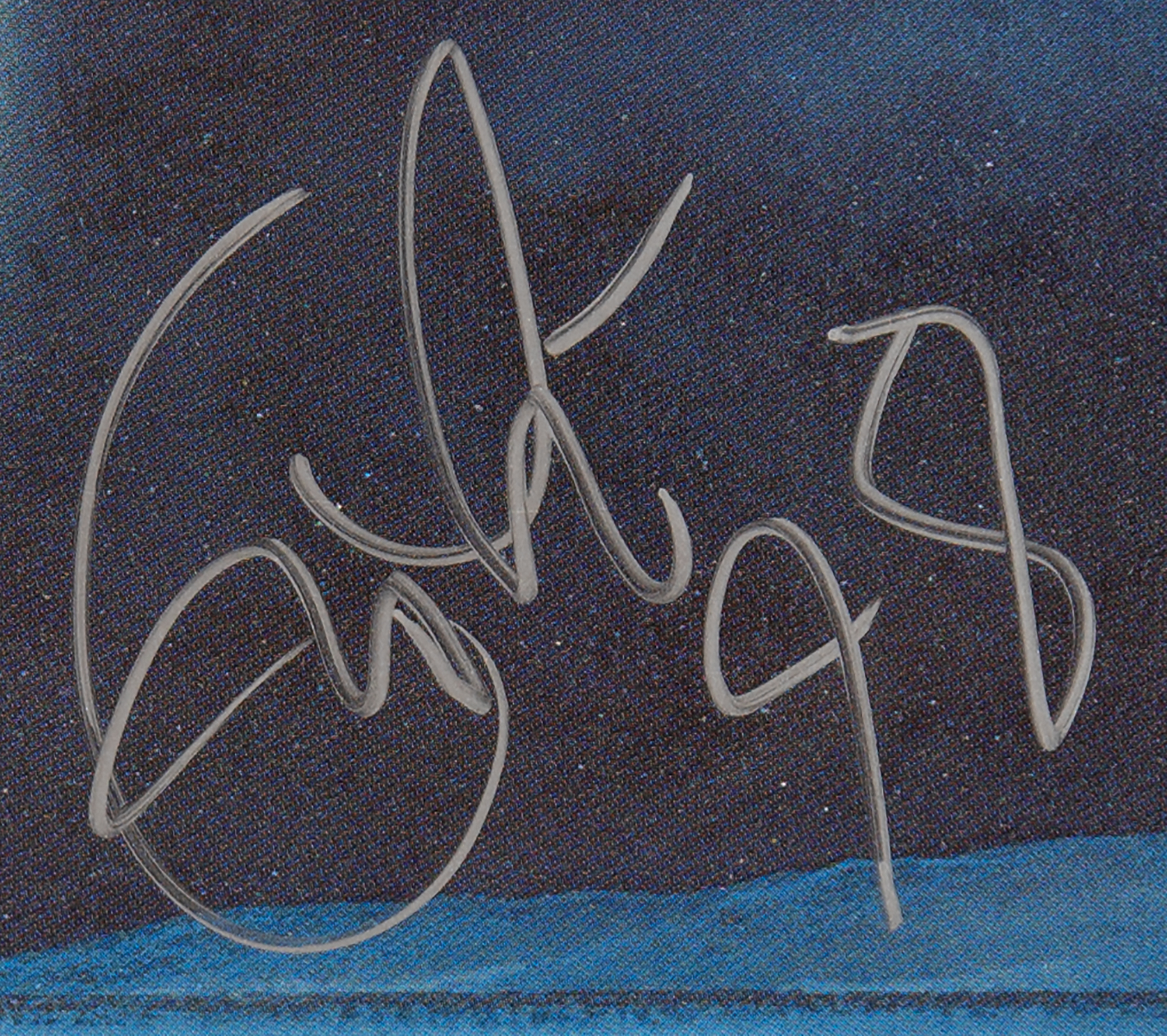 Album flat for Eric Clapton's thirteenth solo studio, Pilgrim, signed on the front in silver ink, "Eric Clapton, 98." In fine condition. The record is not included. Accompanied by an official program for Clapton's 1998 Pilgrim Tour and by two guitar picks marked on the front and back, "Eric Clapton" and "Pilgrim."