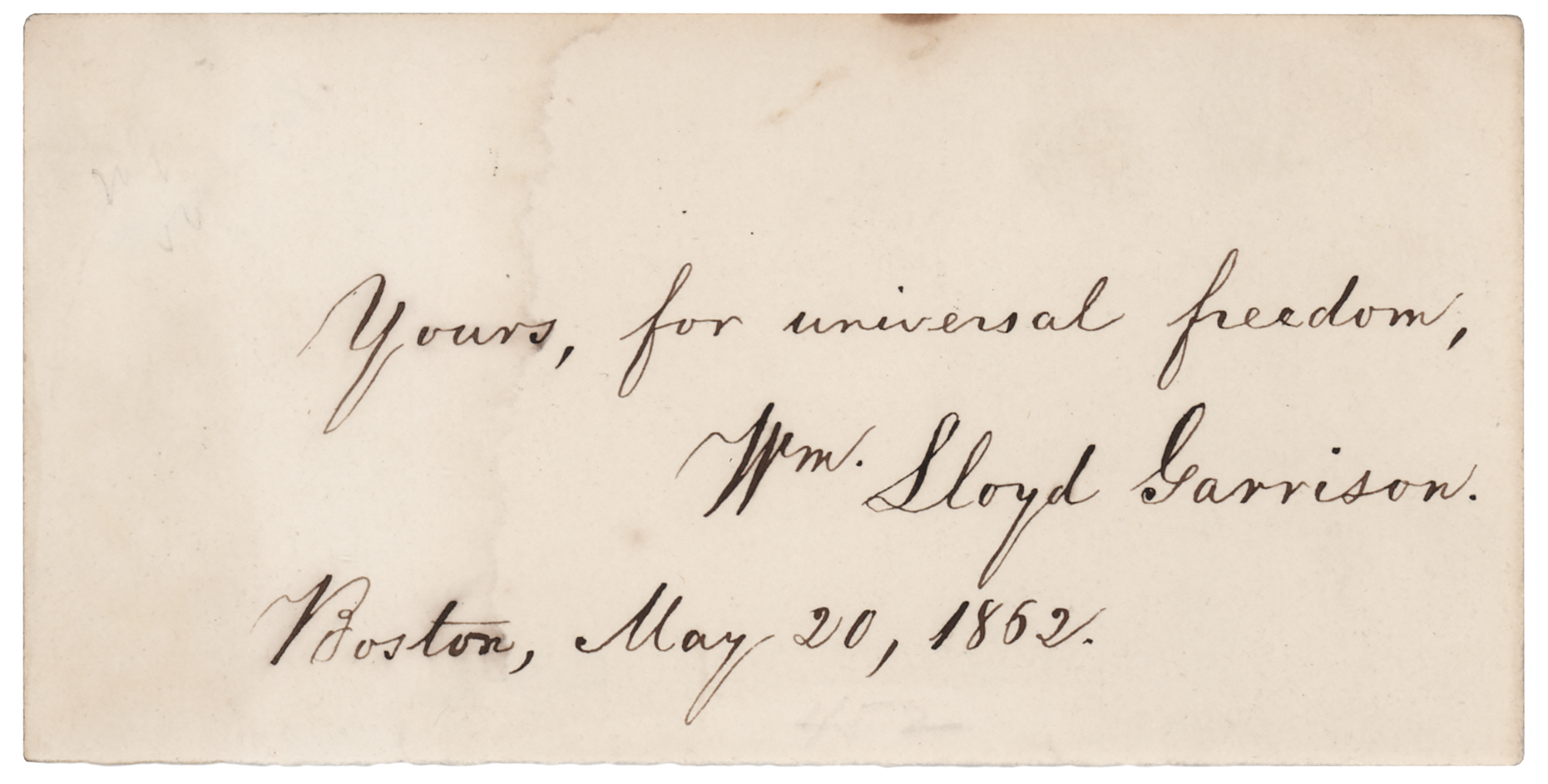 "Yours, for universal freedom, Wm. Lloyd Garrison, Boston, May 20, 1862"
