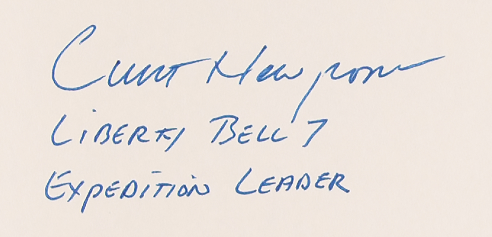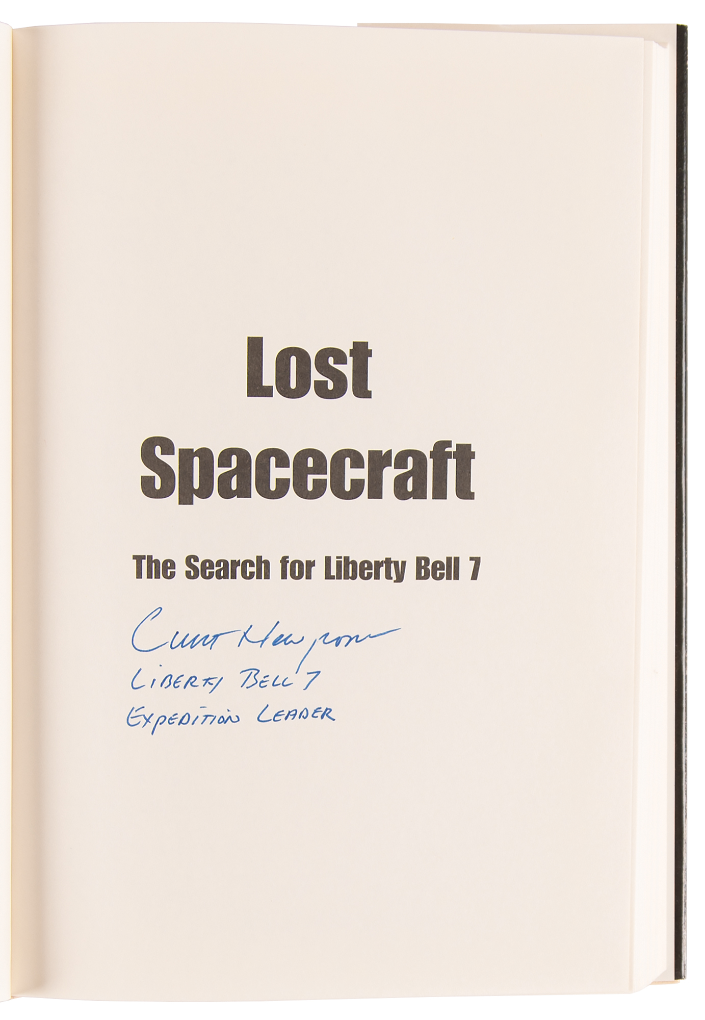 Signed book: Lost Spacecraft: The Search for Liberty Bell 7. Ontario, Canada: Apogee Books, 2002. Hardcover with dust jacket, 7 x 10, 212 pages. Signed in blue felt tip, "Curt Newport, Liberty Bell 7, Expedition Leader." In fine condition.