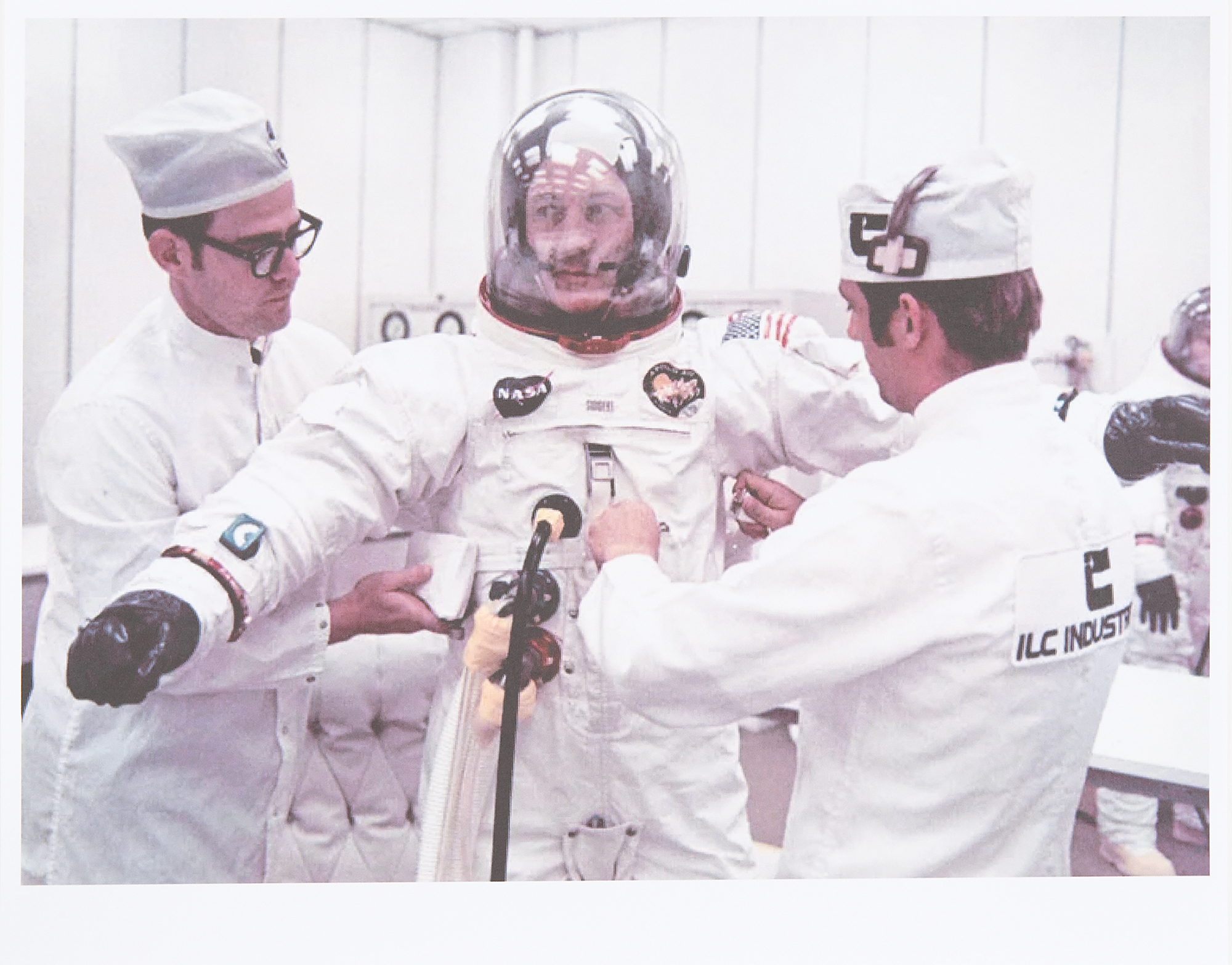 The Apollo 13 PGA space suits were downgraded to 'Class II' for training in the Water Immersion Facility (WIF) at the Manned Spacecraft Center in Houston on November 19, 1970. The cracks in the gauge's window were likely sustained during this period, as a post-flight inspection of the suits recorded no scratches. The gauge was designated 'Class III' by January 1972, presumably after WIF training for Apollo 15–17.