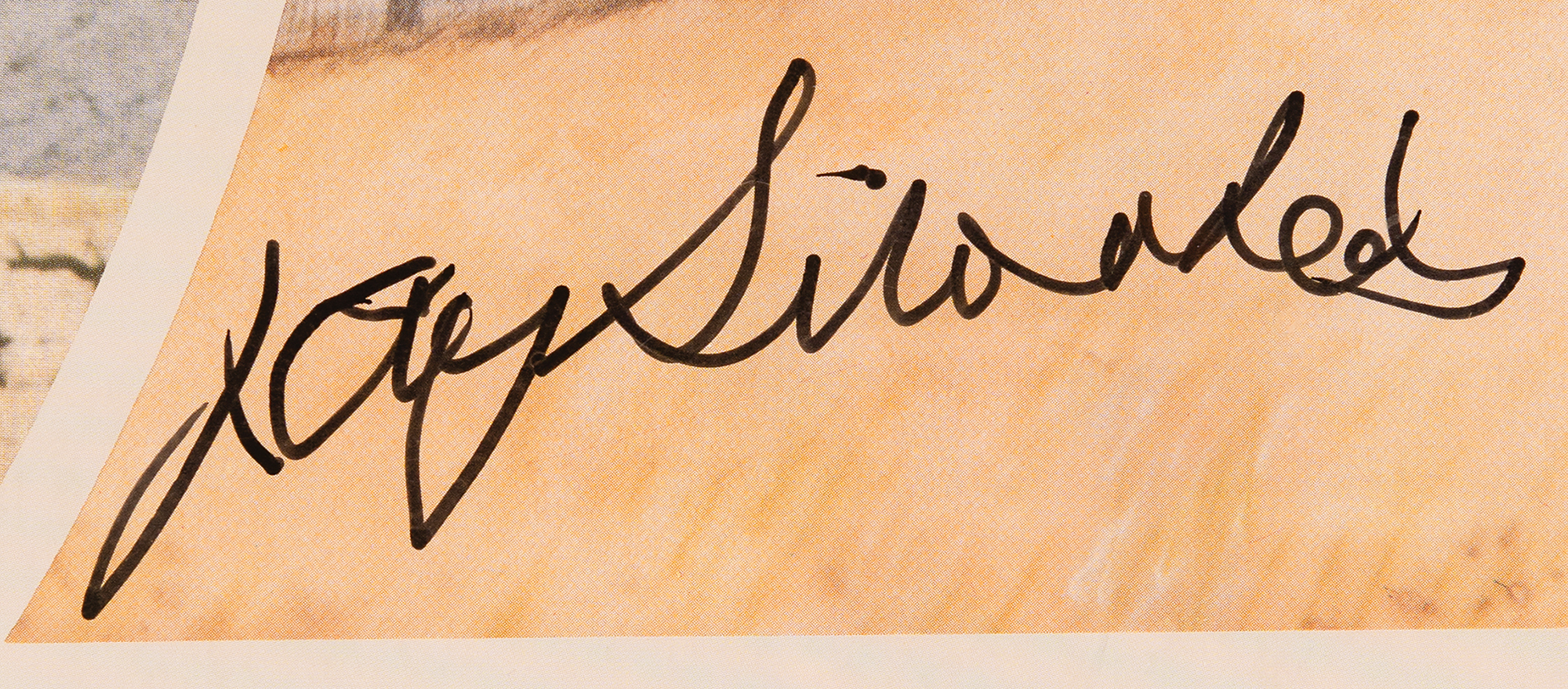 Color 24 x 30 print depicting scenes of Clayton Moore and Jay Silverheels, entitled "The Lone Ranger and Tonto," signed in black felt tip by both. Rolled and in fine condition, with some light creasing along the right edge.