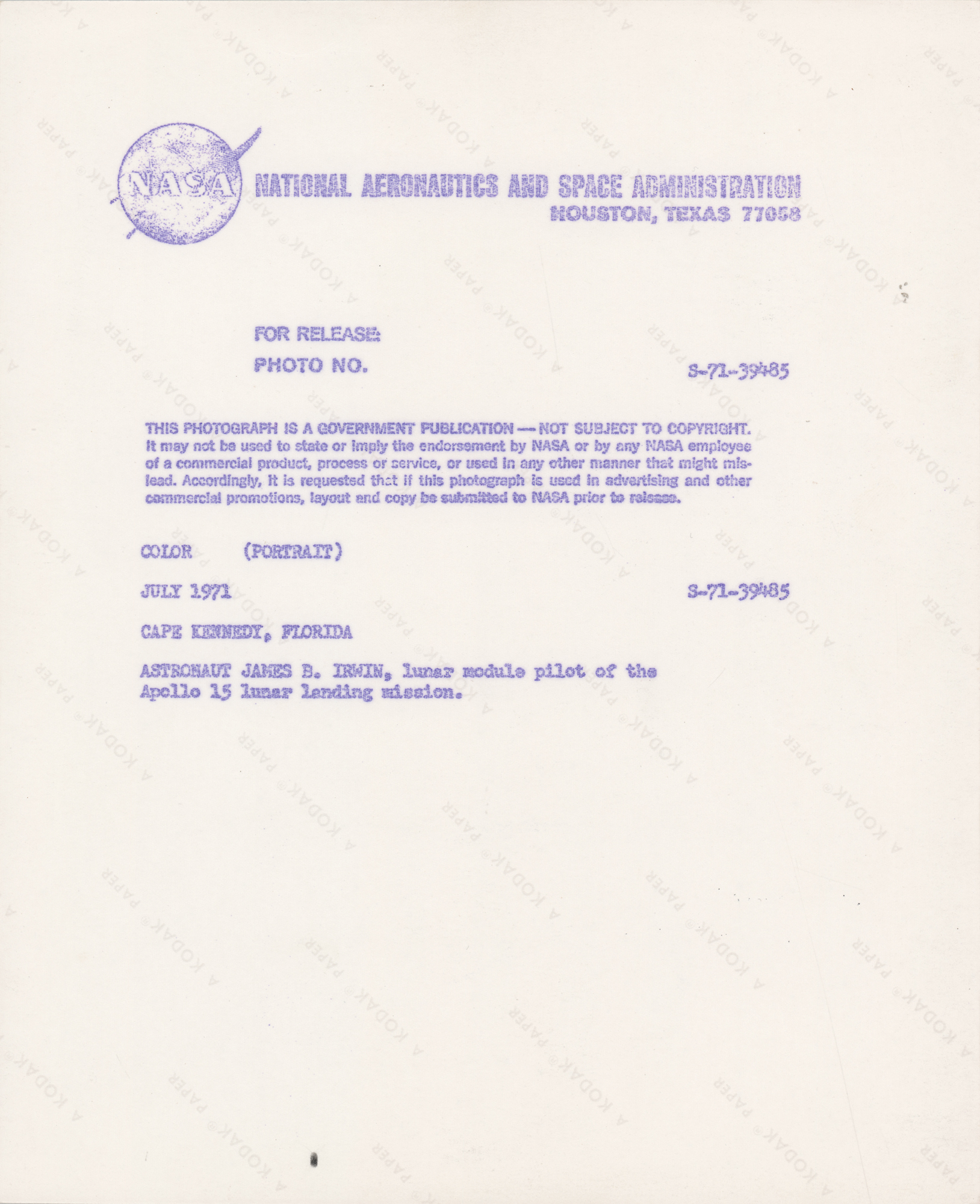 Apollo 14 Crew-Signed 'Type 1' Insurance Cover