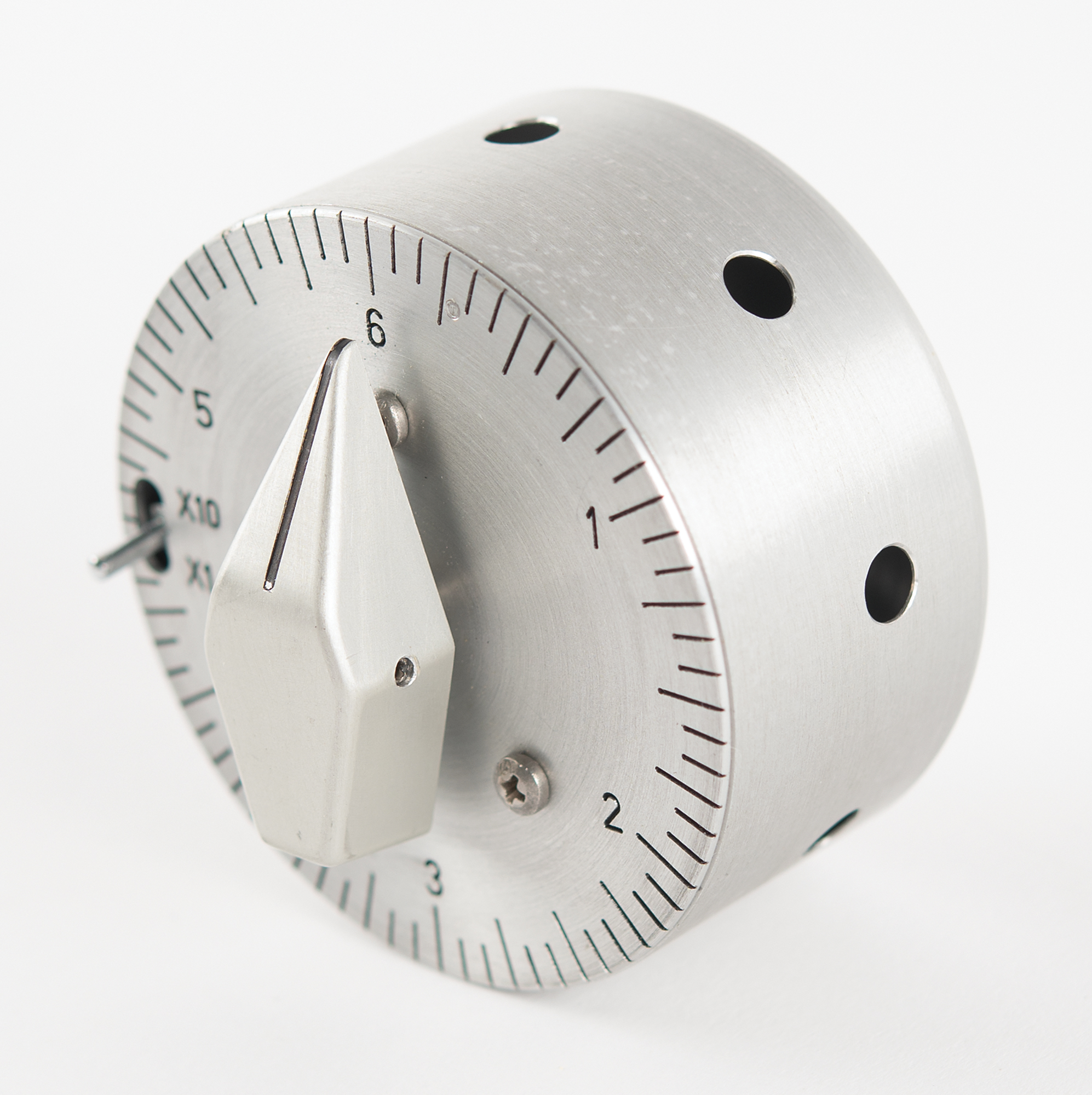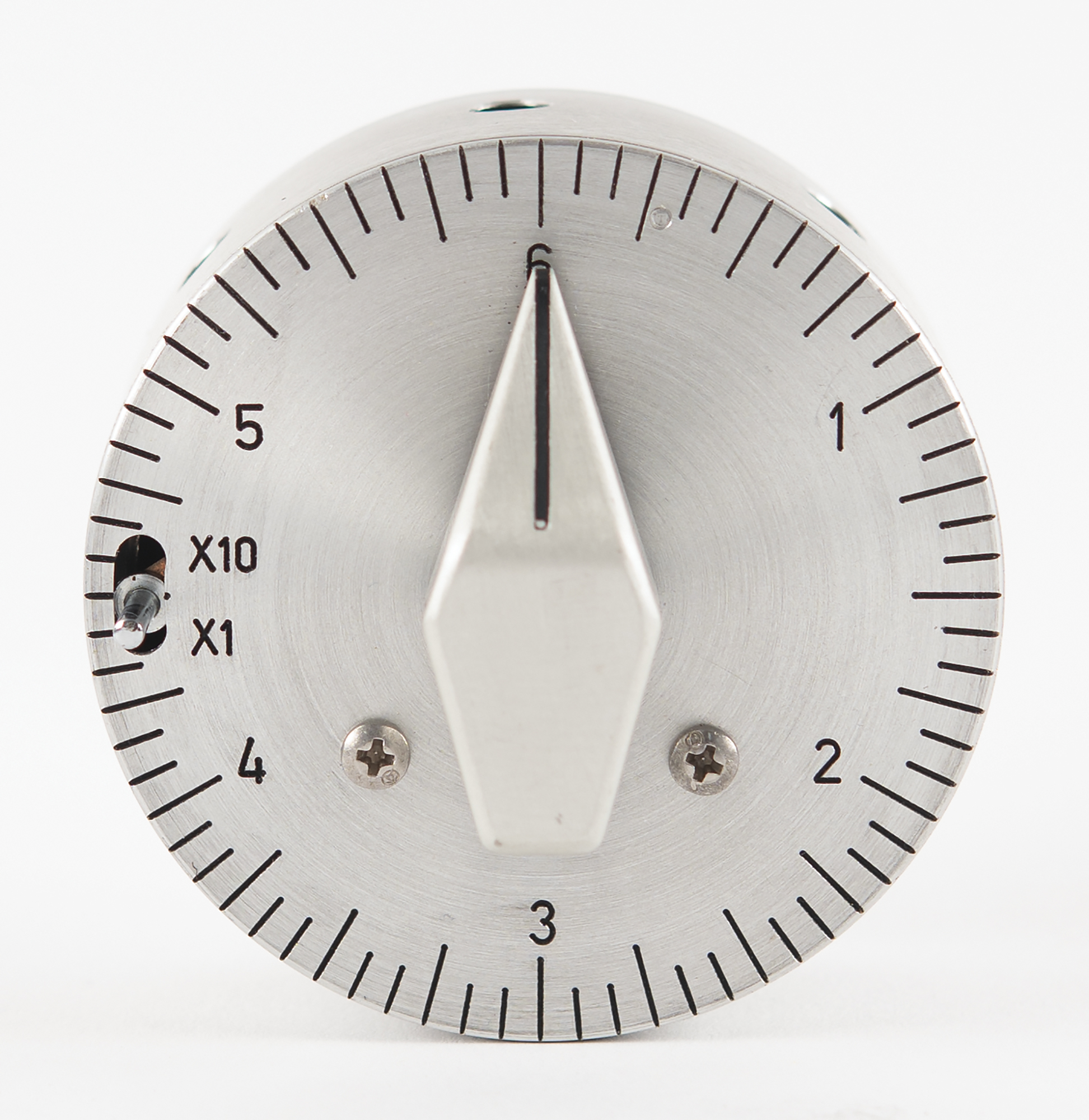 The Apollo Interval Timer works like a standard kitchen timer, sounding a bell when the selected interval is over. As per Apollo stowage lists, it was provisioned onboard the Command Module & Lunar Module to time short interval events. Timer features two selectable modes of operation (6 and 60 minutes) determined by positioning of a switch on the timer’s face: X1 for 6 minute or X10 for 60 minute timing intervals. To operate, the crew would select the mode and rotate the pointer to the desired time setting. An alarm bell chime is generated at the conclusion of the interval.