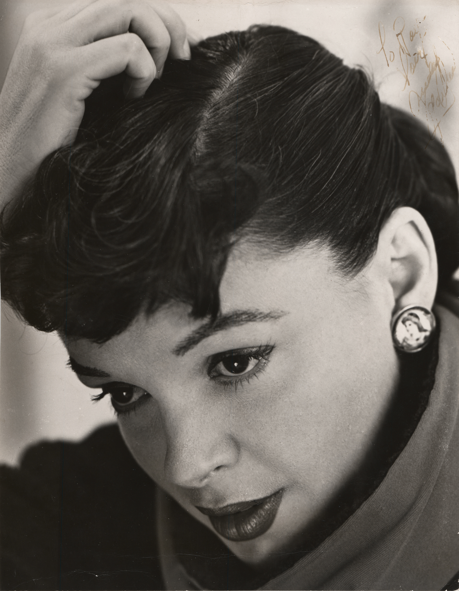 Attractive vintage 8 x 10 head-shot photo of Garland, signed and inscribed in fountain pen, "To Roy, Love, Judy Garland.” In very good to fine condition, with creasing near the bottom edge, a light paperclip impression, light silvering to the darker areas of the image, and fading to the handwriting.