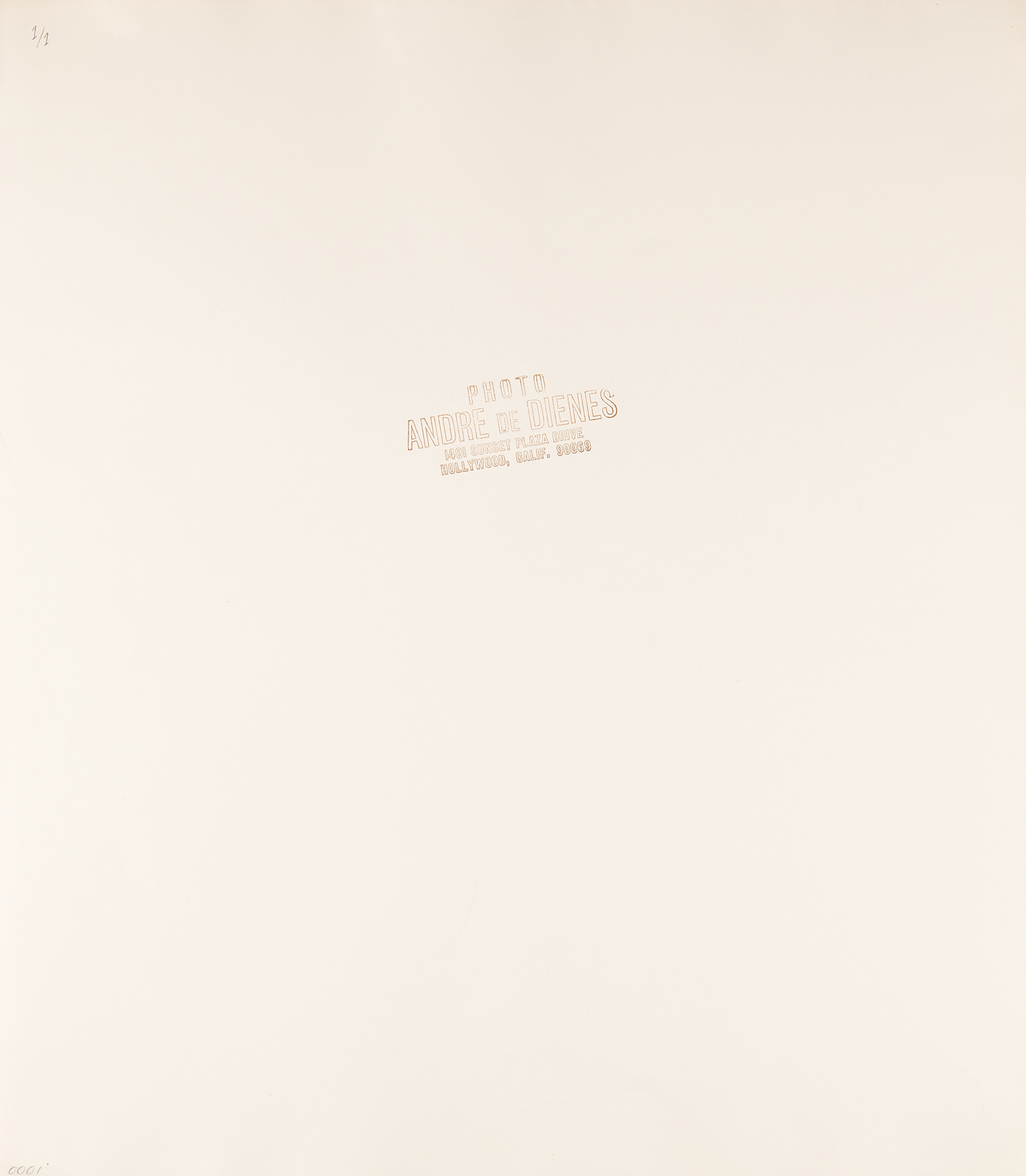 Original vintage circa 1970s matte-finish 20 x 22.75 silver gelatin photograph of the youthful Marilyn Monroe crouching down in a forest clearing, originally taken in the late 1940s by photographer Andre de Dienes and printed from the original negative during the 1970s. Reverse bears the credit stamp of Andre de Dienes. In fine condition, with light edge rippling. Accompanied by a full letter of authenticity from PSA/DNA, certifying it as an authentic "Type II" photograph.
