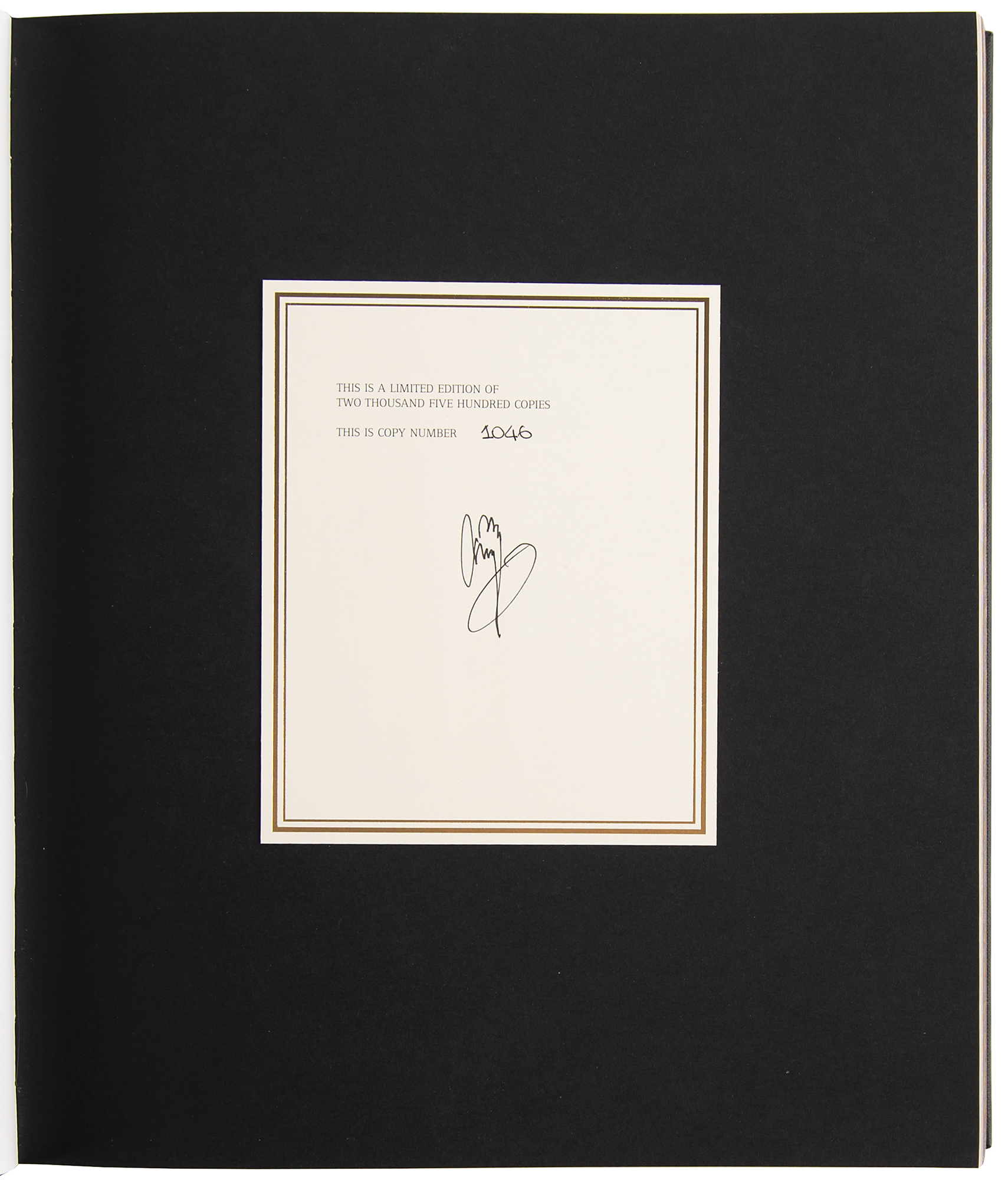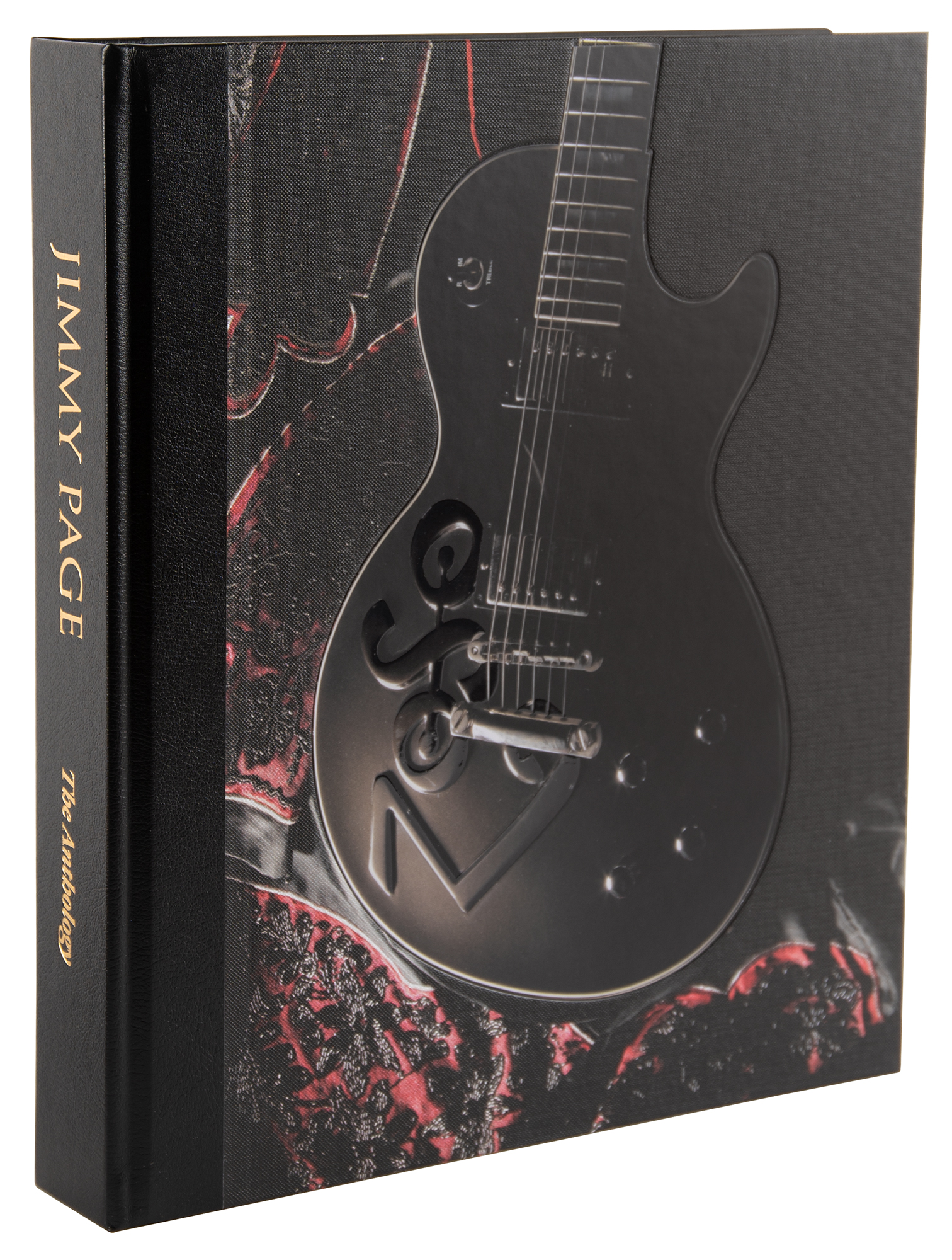 Signed book: Jimmy Page: The Anthology. Limited edition, numbered 1046/2500. England: Genesis Publications, 2020. Hardcover quarter-bound in black leather, with gold leaf blocking and gilded page edging, 11.5 x 13.75, 399 pages. The book is presented in a lined archival slipcase inspired by the Selmer case of Jimmy Page's first electric guitar, his 1958 Resonet Futurama. Signed on the colophon in black ink by Page. Includes the original felt drawstring bag. In very fine condition. Following the sell-out success of his first book, this new limited edition book documents Page’s musical career through previously unpublished material from his rich personal archives. Jimmy Page: The Anthology is narrated entirely in his own words and includes contextual photography spanning six decades.