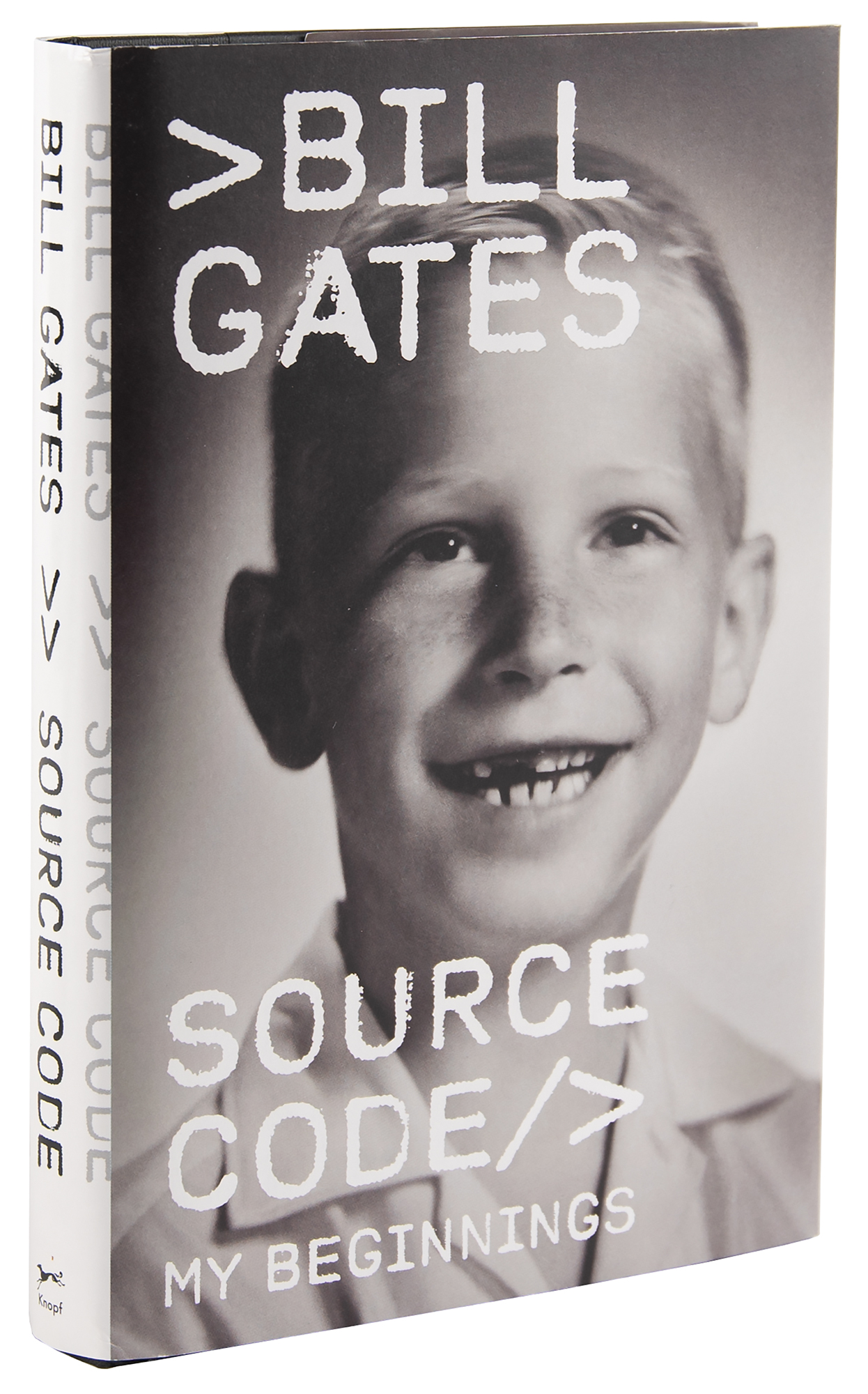 Signed book: Source Code: My Beginnings. First hardcover edition. NY: Alfred A. Knopf, 2025. Hardcover with dust jacket, 6.25 x 9.5, 318 pages. Prominently signed on a free end page in black felt tip by Bill Gates. In very fine condition.